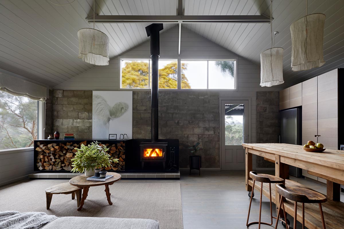Firewood and Candles designed by Rachcoff Vella Architecture located in Melbourne is a successful rebirth of an old dairy house, carefully restored to preserve its unique raw and utilitarian nature while incorporating a contemporary approach for future generations. The main challenge was how to make a good, habitable and structurally sound dilapidated building without demolishing it all and losing its authenticity, character and charm.