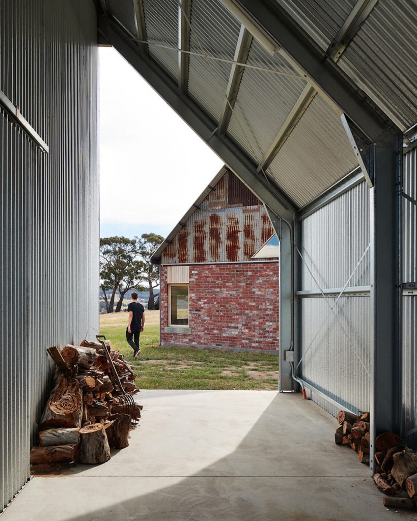 Planted amid rolling hills of farm land, Nulla Vale House and Shed is perched atop a hill with its rustic exterior perfectly at home with its surroundings. The house is a stone-throw away from the shed and anticipates a more permanent home to be built at some stage in the future.