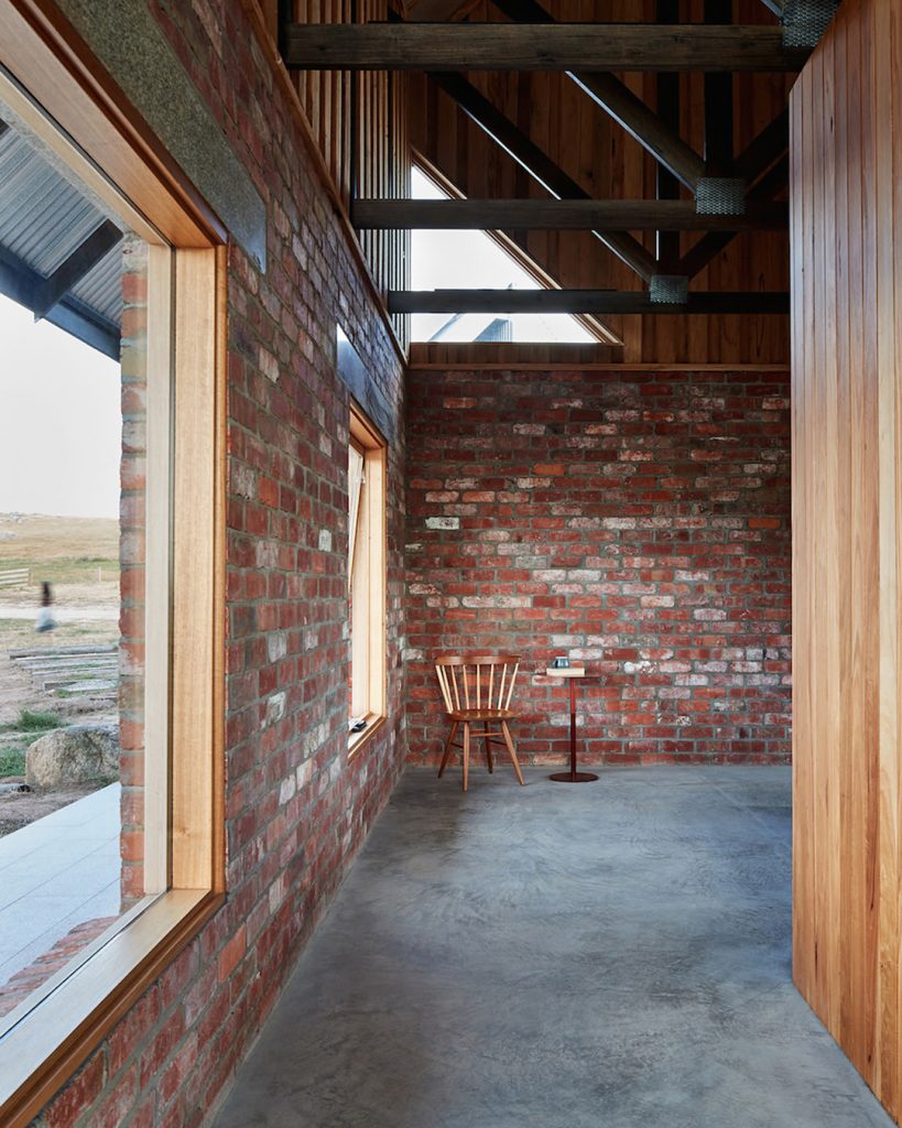 Inside the raw exterior is a hidden oasis consisting of comforting materials shaped by the environment. The timber framed ceilings provide a signature farmhouse appeal, with timber and earthy, exposed bricks combining to create a warm, homey ambiance.