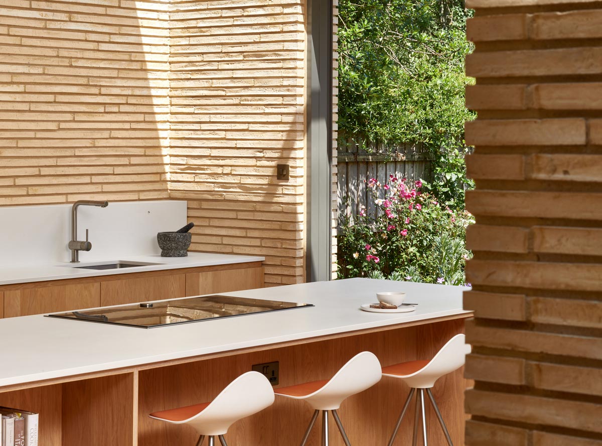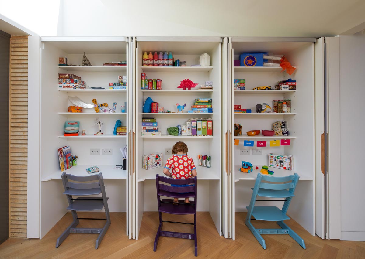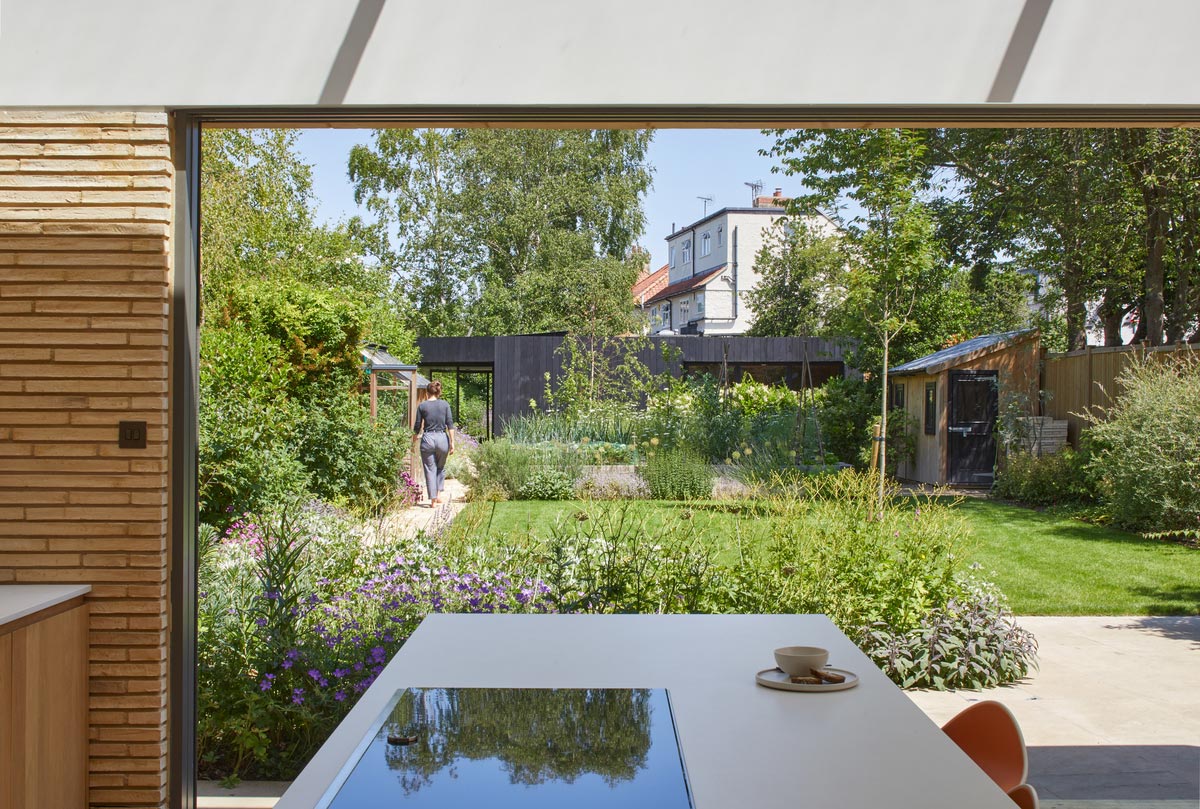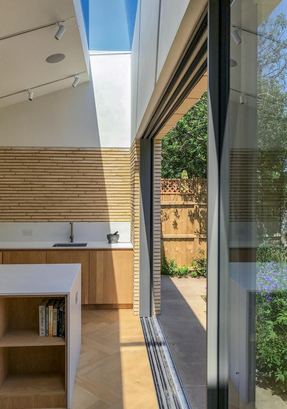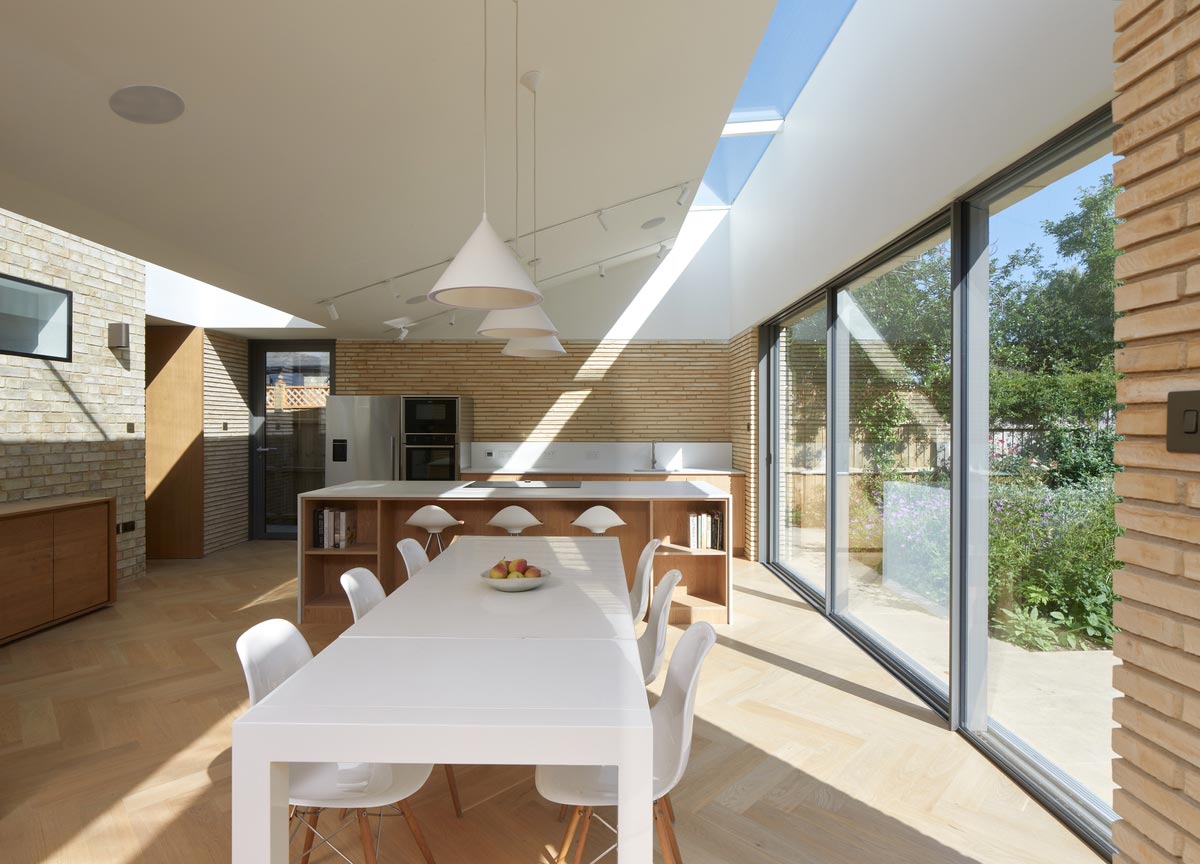 “We wanted the extension to feel like it was enveloping the existing home, creating a new layer around the older shell of the house so that they would read together. We also wanted to design the house from the inside out, where the form of the extension would be created by a combination of solving environmental issues [solar and thermal] as well as dealing with the practicalities of everyday life from parents who work from home to home-schooling children.” – Neil Dusheiko