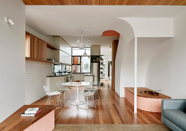 Designed by FMD Architects, the Dowel House is an internal refurbishment to an existing single fronted terrace located in Melbourne. The clerestory skylight has undergone an enchanting transformation to become a point of focus over the dining area, utilising multi…