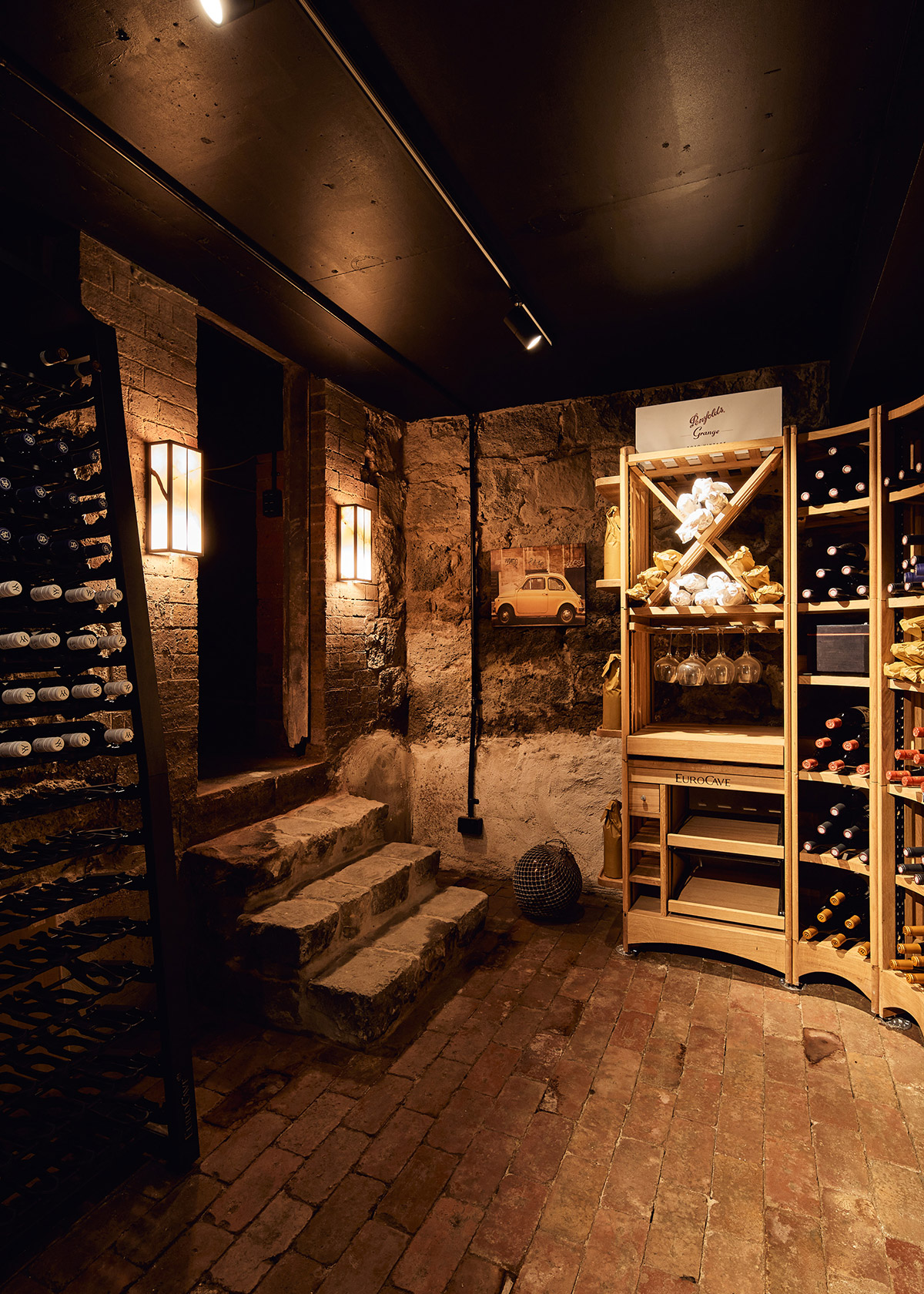 These different ambiances can be used as a private sanctuary or as an entertainment space for social gatherings, always providing a well oriented and ventilated space. The new basement comprises a garage, a car wash, a bar, and a home theatre, and is connected with an existing cellar underneath the heritage house.