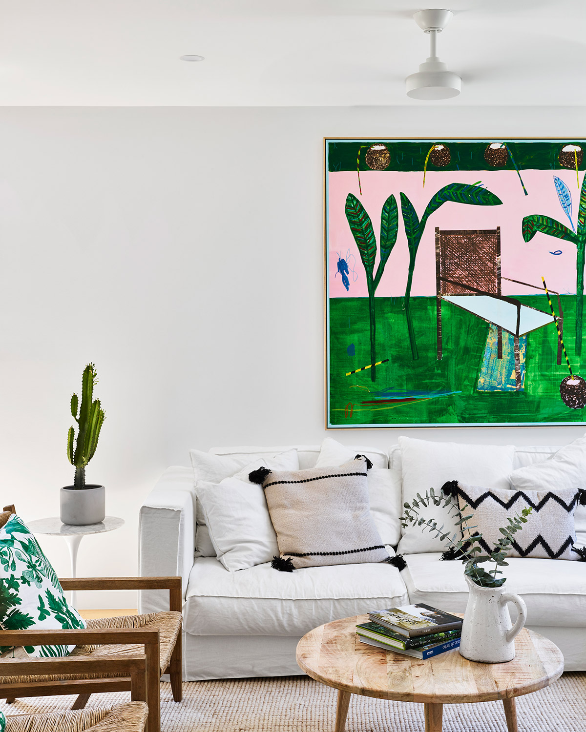 The improved connection to internal and external spaces and the rationalised exterior landscape satisfied the client’s desire to create a free-flowing Bali style villa that sits within a lush tropical landscaped setting. Glazed, floor-to-ceiling doors at each end of the house further reinforced this connection and also brought a whole lot of light, warmth, and a sense of openness throughout the living space. The interiors are also predominantly neutral in colour which allows meticulous personalisation.