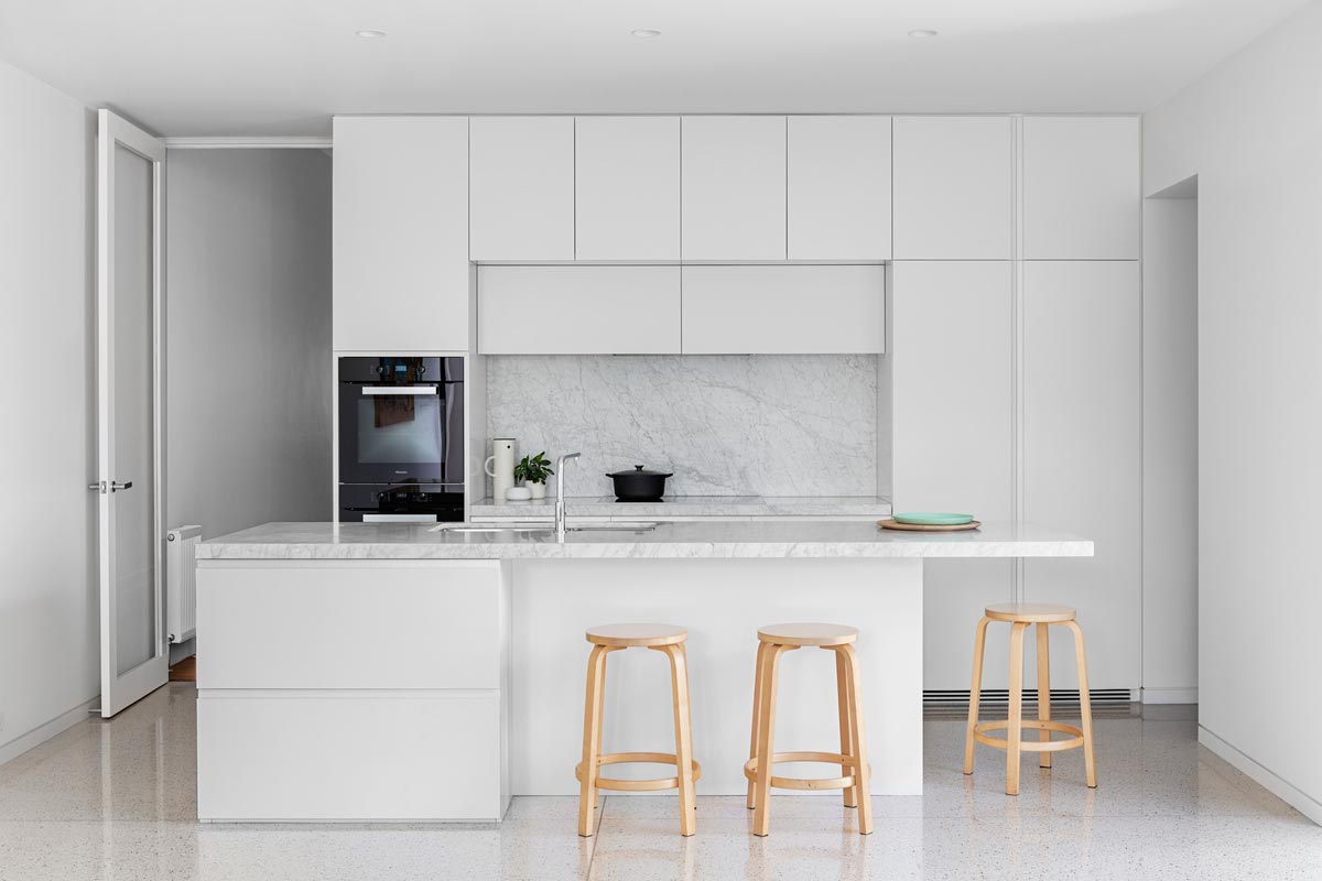 Built for a busy retired couple who decided to downsize their home without sacrificing amenities, the Brighton Residence designed by JTA is a renovation of an original house in Melbourne. The owners sold their family home and bought a smaller home in order to simplify their lives. Their interests were clear: they wanted to spend more time with family and friends, as well as doing the things they like, while spending less time on housework and maintenance. Shall we go inside?