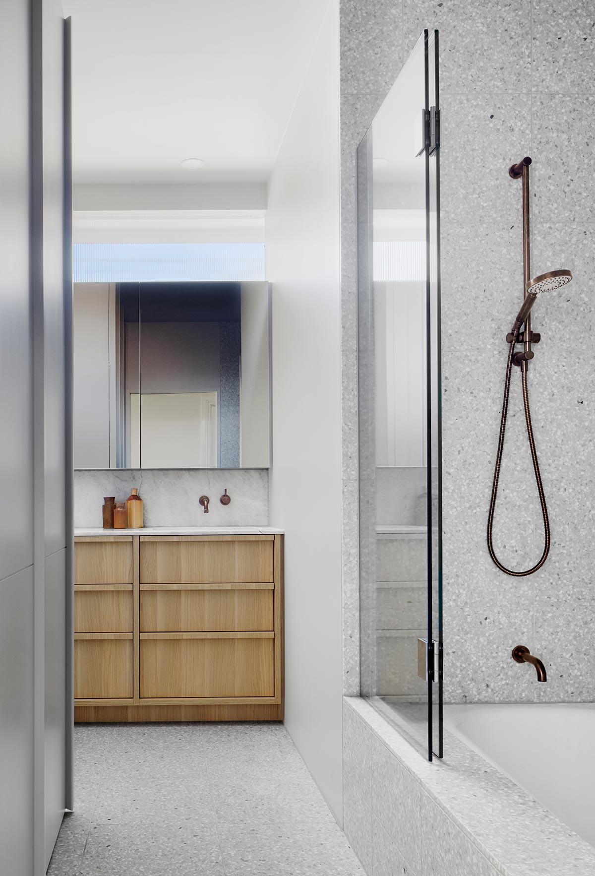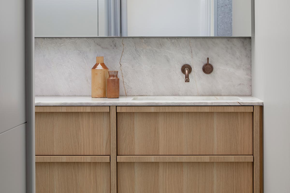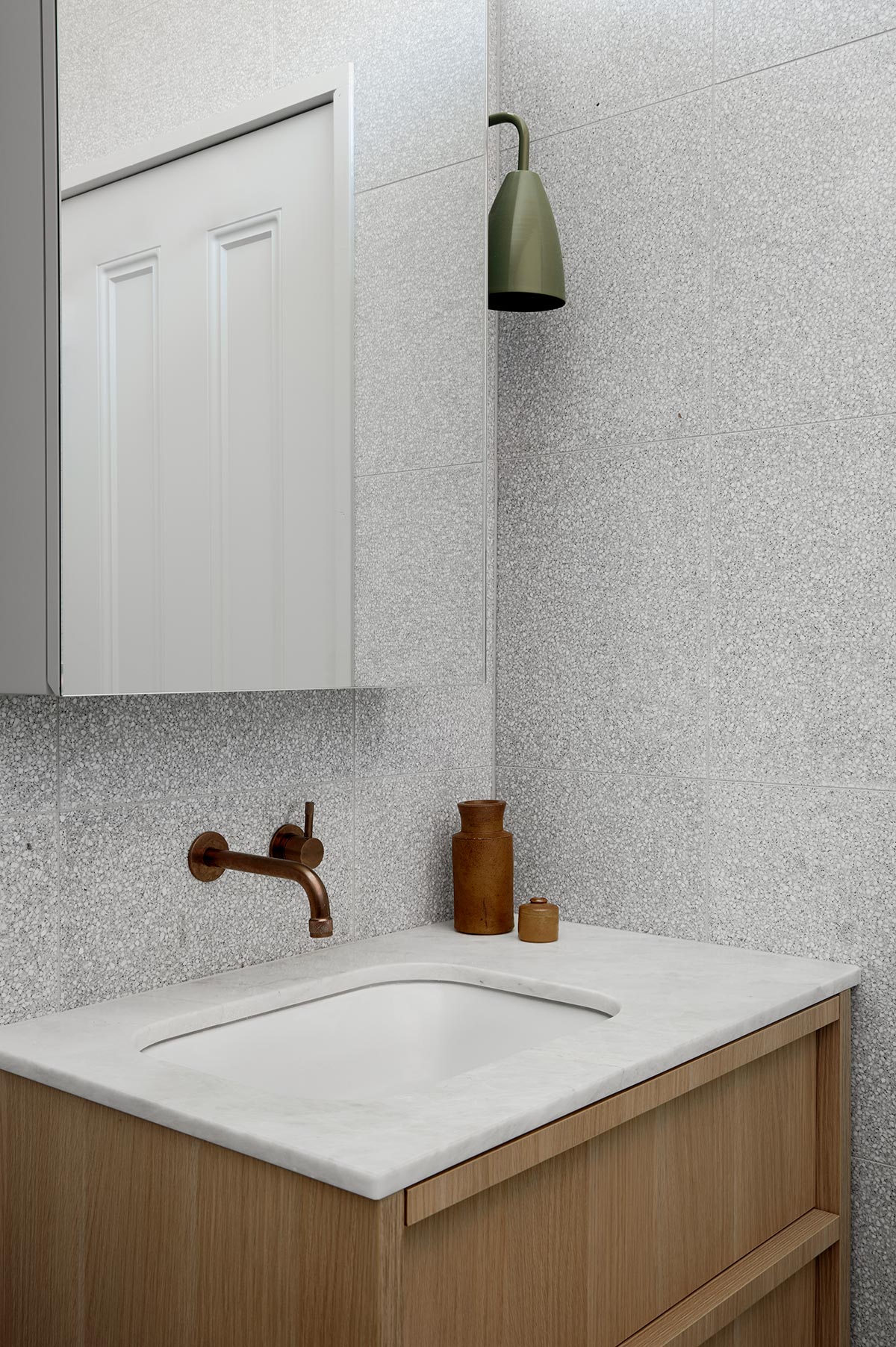 The interiors are light-filled and feature clean lines with a neutral palette of soft grey and timber finishes. The colours are beautifully contrasted with dark bronze fixtures and lima marble textures for a refined sophisticated look. The final design solution is a testament to clever, considered and practical ideas that are sympathetic to the existing conditions and successfully achieve the clients brief to create a simple, functional and beautiful home that they can share with family and friends.