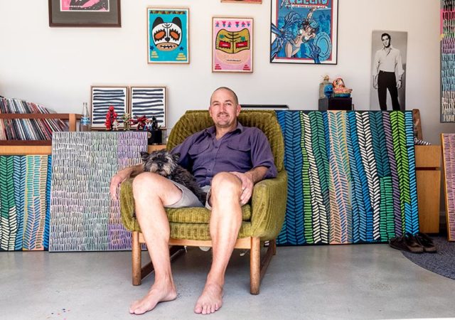 We recently chatted to cool dad and artist, Liam Murphy. You might’ve seen Liam’s works in galleries such as Fenton and Fenton, Jumbled, or Penny and Reiby. His works are geometric colourful, and very recognisable. We LOVE that Liam’s playlist is entirely…