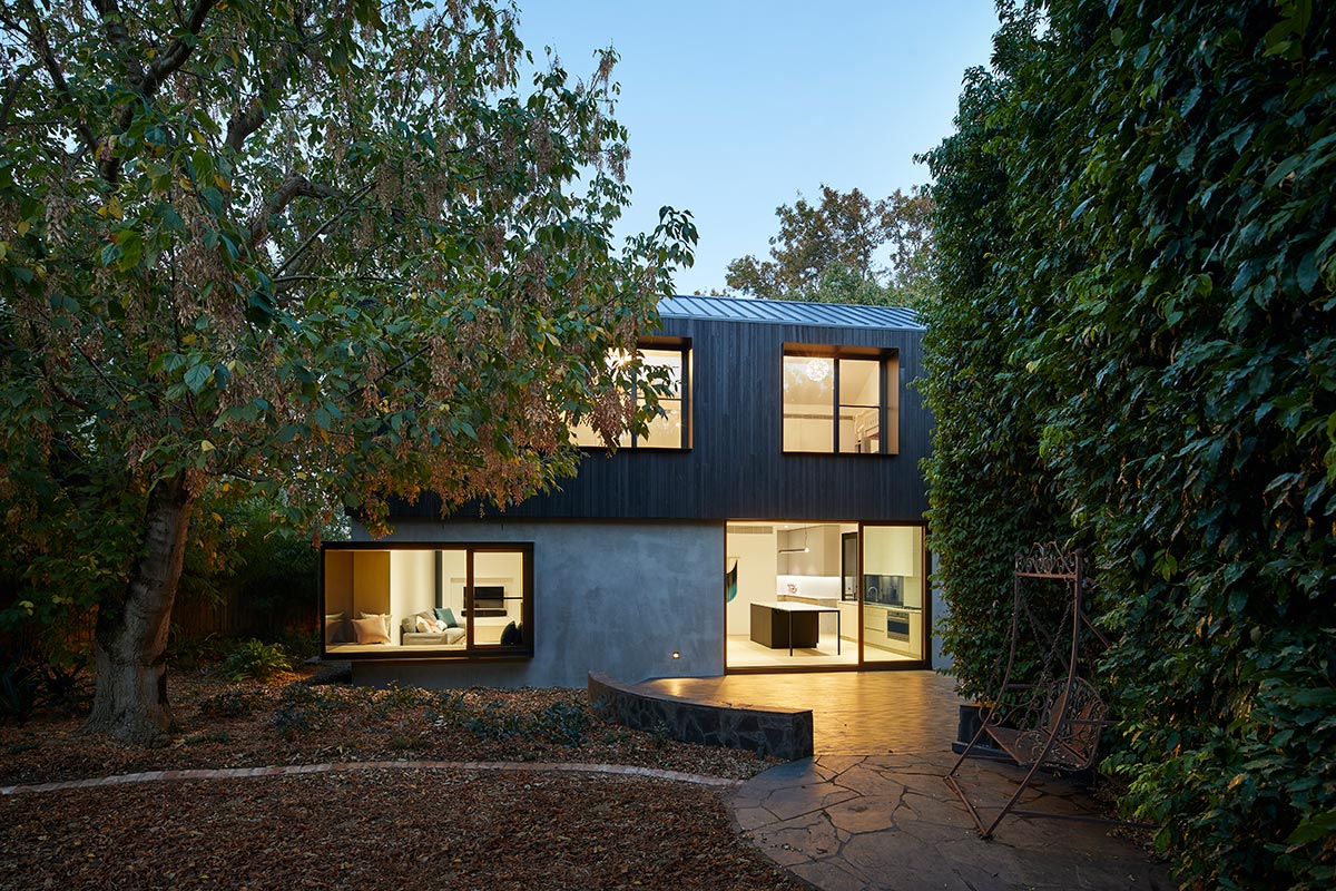 “The design of the Charred Wood House has enabled the client to inhabit a space that is outward-looking and engaged with its context but at the same time private. The added informal living areas that connect with the garden have contributed to the sociability of the house allowing for extended family gatherings that readily flow from interior to exterior areas.” – Jane Riddell Architects
