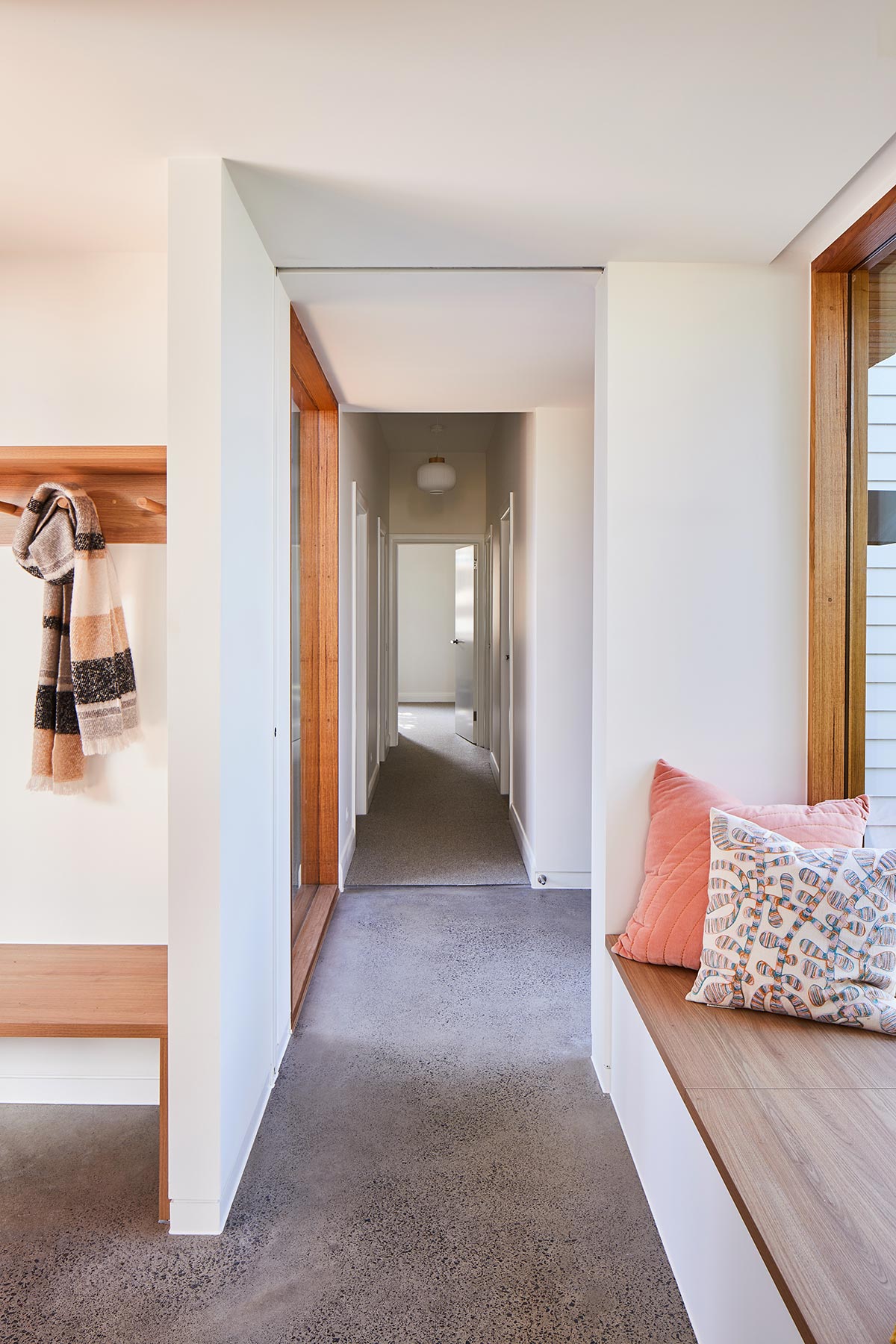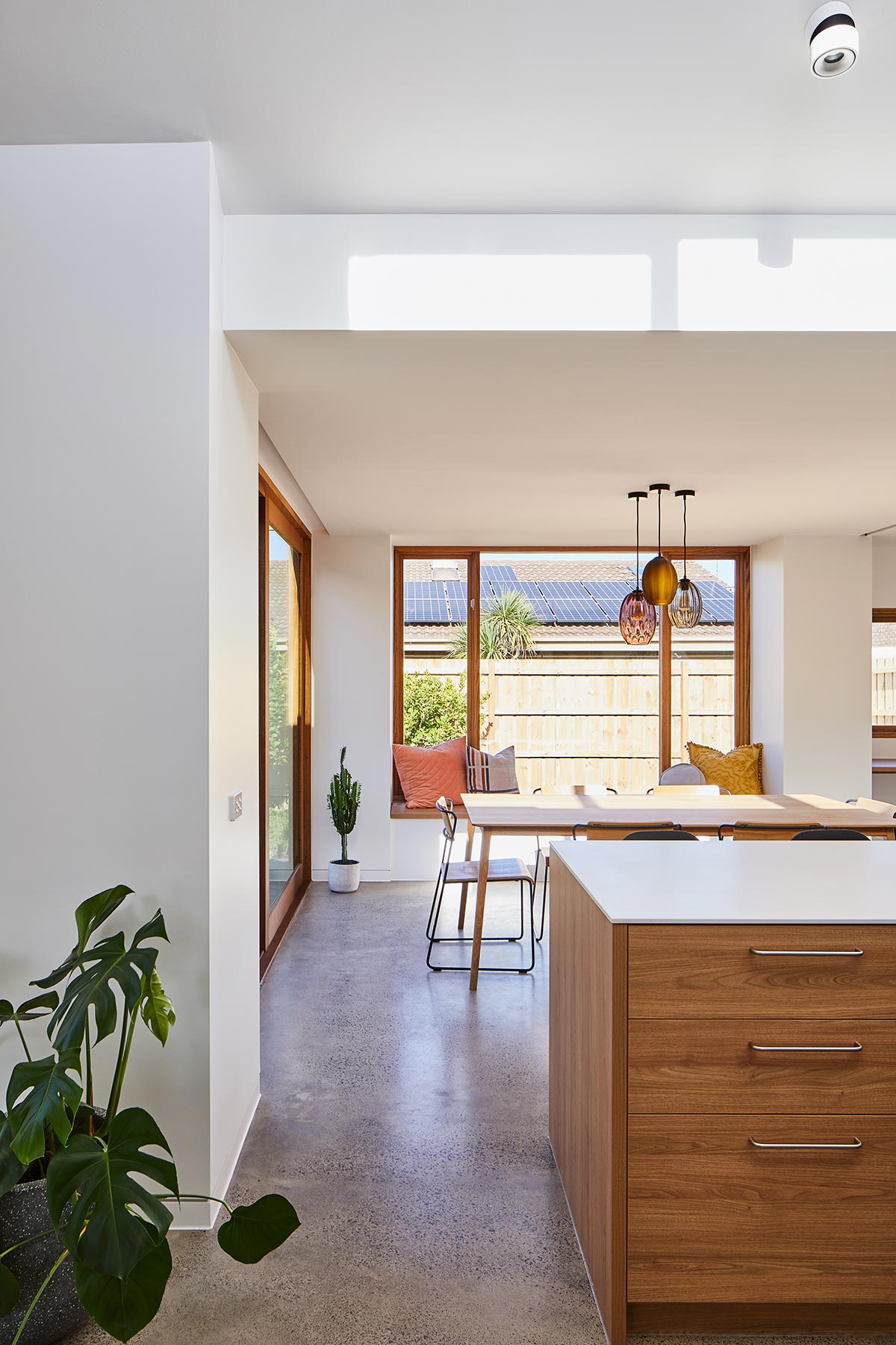 “For a family of three, this house didn’t require too much more additional space, but it definitely needed a lot more light, far more comfort and connection to the backyard. Our strategy was quite simple: separate the living areas from the bedroom areas, and try and get as much light into those living areas as possible. This resulted in a separate new side-entry that linked the two zones. This side entry results in a small central courtyard, providing a generous north facing window to the living room.” – Altereco Design