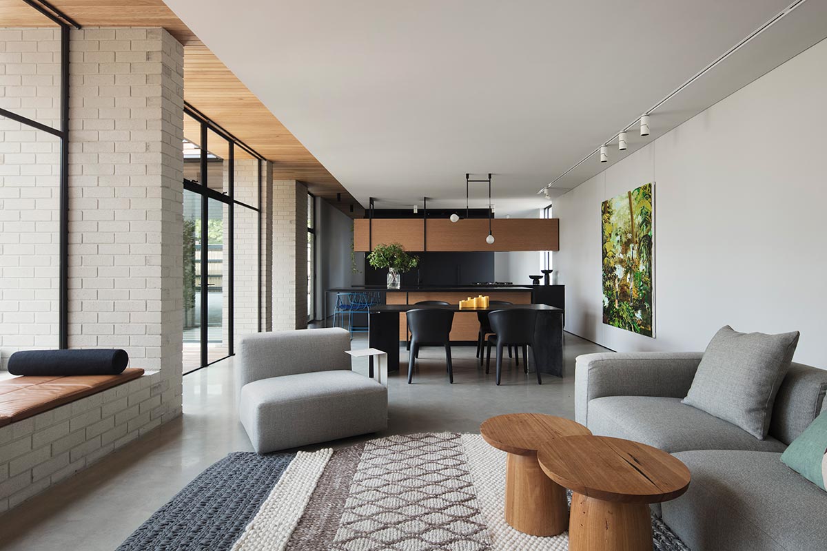 “Sitting at the centre of Daylesford’s historic church district, heritage control restricted the new design from interrupting views of the surrounding church buildings. It was a primary concern of the clients to keep the height of the new extension low to maintain views across the property from the street. The clients’ other key concern was how to capture northern light in a south-facing backyard.” – Moloney Architects