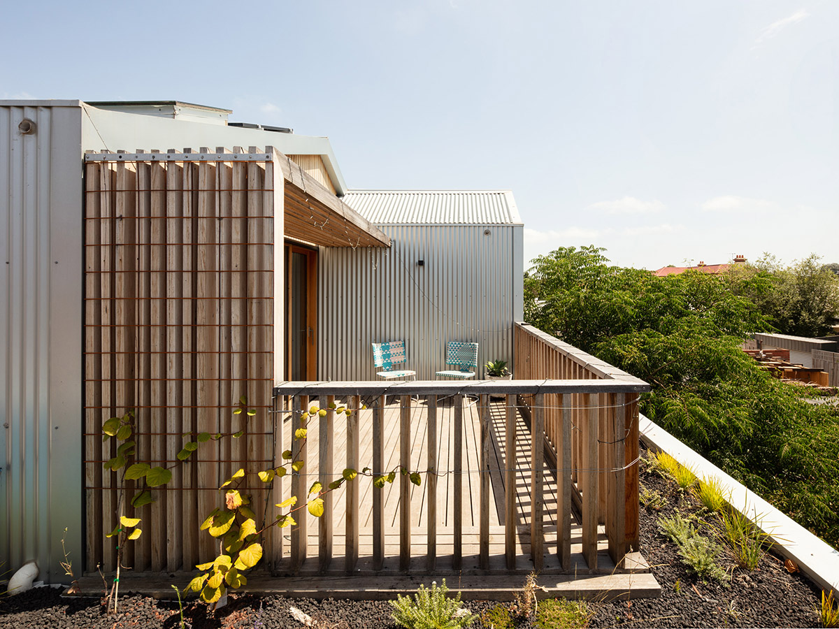 Internally, one of the more obvious features was the roof shape which allows interesting and dynamic ceilings in the kitchen, children’s bedrooms and bathroom upstairs. These ceilings are combined with strategically placed glass panels that allow natural light to flood in the interior of the home.