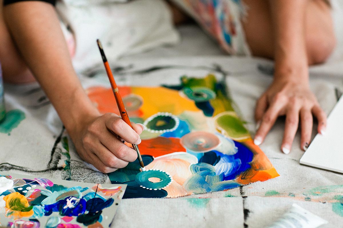 My name is Emma Hollingsworth. I’m a proud Kaanju woman and I run Mulganai which is a contemporary First Nation art brand. I paint about my own journey as a young Indigenous woman who is owning her culture and what it means to be a Black woman in this day and age. I also paint and talk about social issues that I have experienced in my life.
