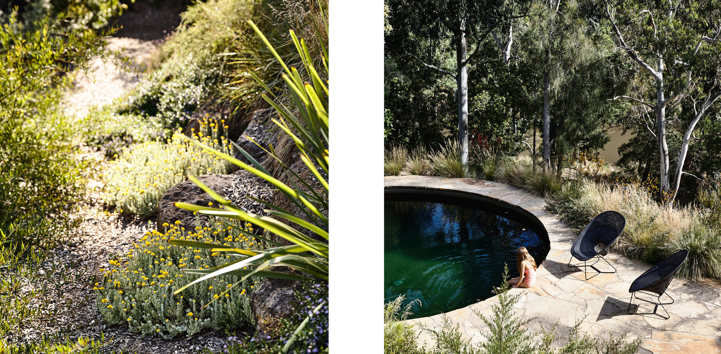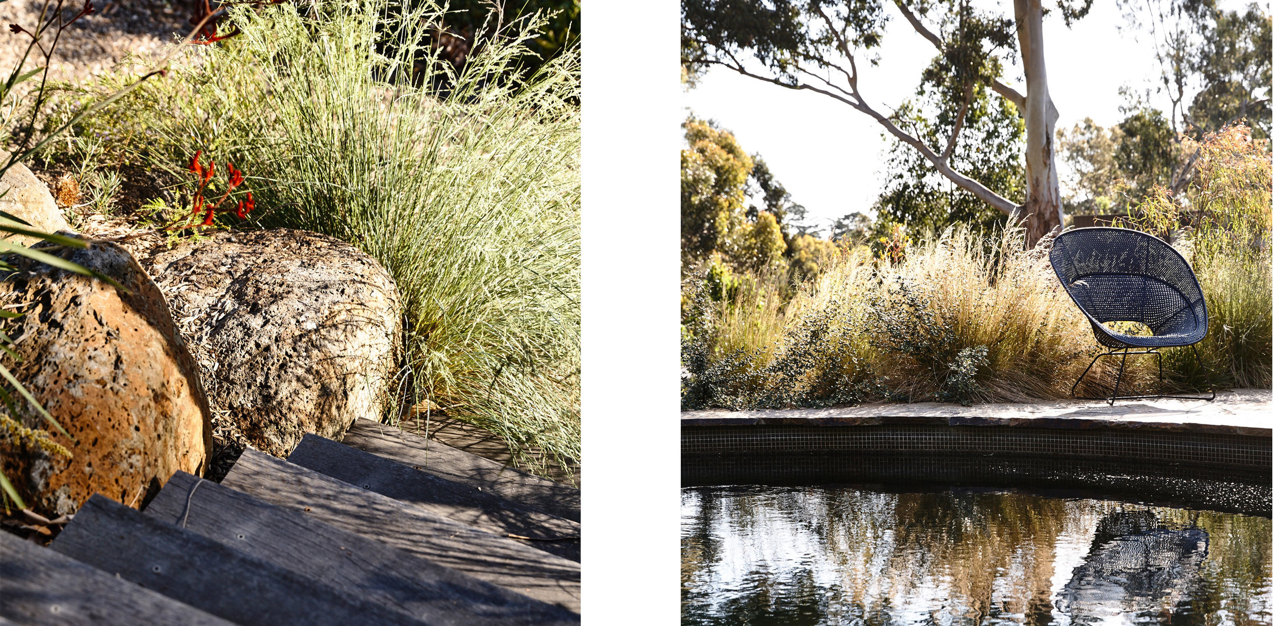 This steep bush block on the banks of the Yarra River in Fairfield, an inner city Melbourne suburb, has been sectioned into a number of usable and considered native gardens. This project is an exemplar for all the community – it advocates an approach to design and the environment that is accessible, it embraces an attitude that is distinctly Australian. The riverbanks have been stabilized and the fauna returned to a familiar and safe environment. The garden is watered naturally when it rains and the pool is serviced by solar tubing and power offset by photovoltaic cells. Native gardens in the Australian natural style pioneered by Ellis ‘Rocky’ Stones and Gordon Ford. Using soft edges, boulder outcrops, natural ponds and native plants, Sam continually works toward advancing the tradition of the natural garden in Australia.