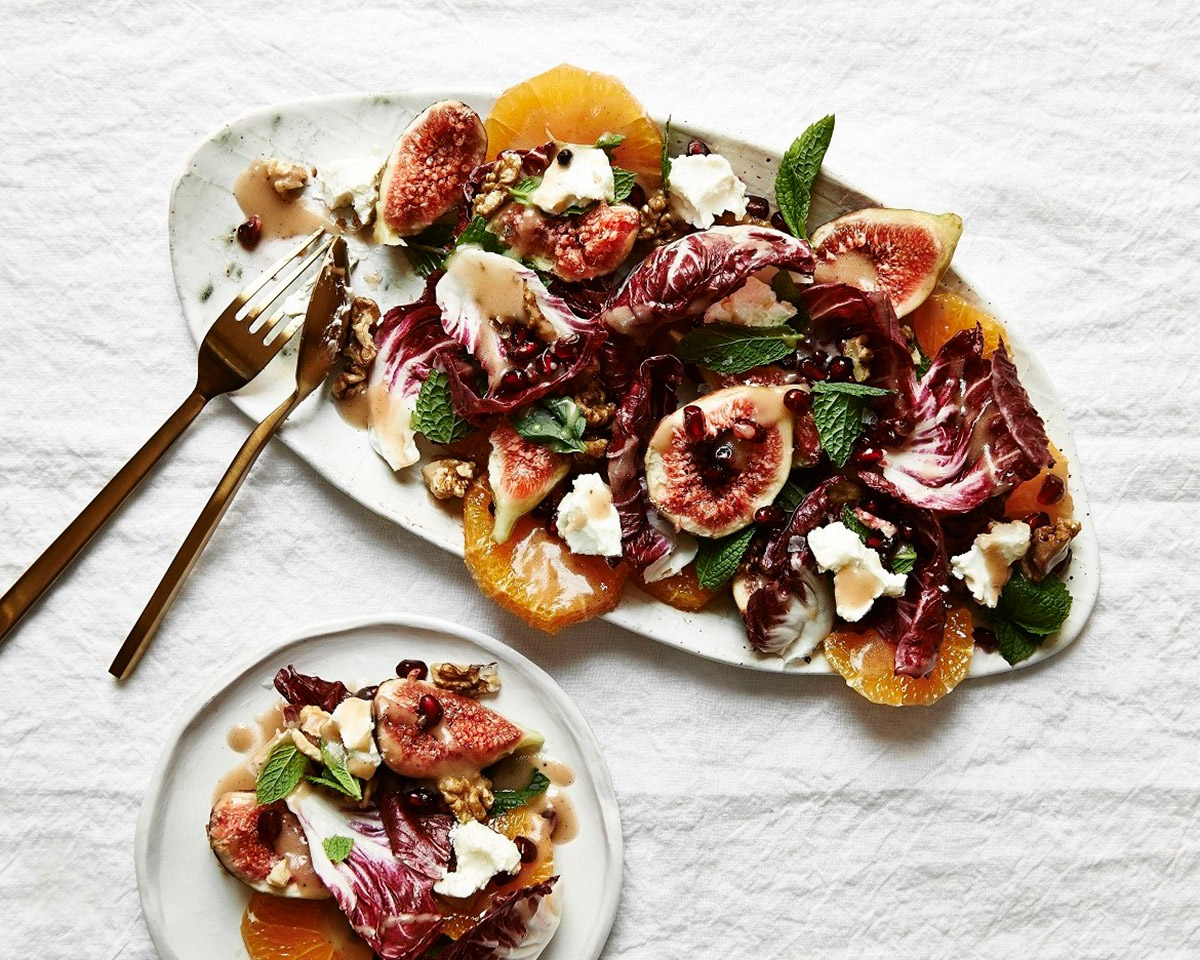 - Roughly tear the radicchio into pieces. To assemble, arrange the orange, fig and radicchio on a large serving plate.