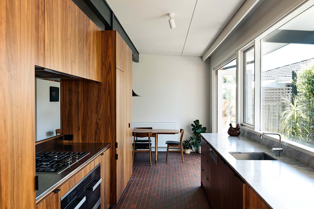 This home was originally designed in the optimistic modern style of the time being advanced by Robin Boyd and The Age’s Small Homes Service, that Jack Clarke contributed to at the time. The redesign done by MRTN Architects extended the size and ceiling heights of the original bedrooms through re-modelling the roofline and an ensuite is added.
