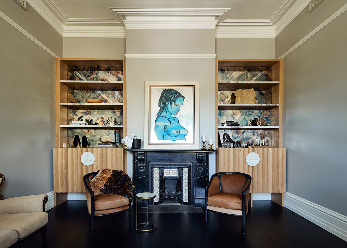 Inside the home, the open plan living areas feature a prominent crossover between the old and new design elements. Luxurious marble tiled floors and a seamless combination of bold and neutral colours dictate the aesthetic of the whole space. Ornate light fixtures and stylish wall patterns are also carefully curated to match other interior components of the rooms.