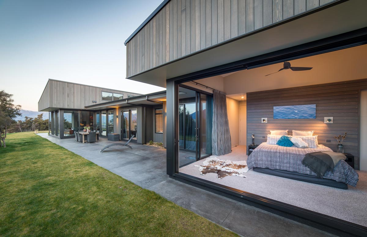 Nestled on the upper slopes of Mt Iron close to central Wanaka, Kanuka Rise designed by Condon Scott Architects boasts spectacular mountainous views and looks out from a lush native vegetation. This house is made up of a pair of mono-pitched gabled forms with a lower profile connecting element and aims to become an intrinsic part of the landscape and its picturesque built context.
