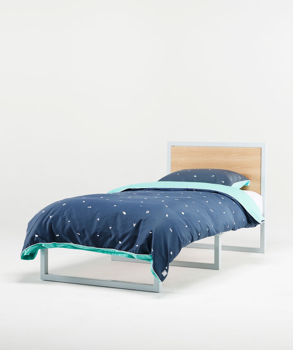 Kids’ furniture tends to grow with them over time. A Chambray Ottoman might be great for mum to pop her feet up while rocking her bub in a nursery, and it’ll come in handy as the little one becomes more mobile, eventually turning into a plush reading spot. Something like a bed frame, your kiddo might have for ten or twenty years, so you want to get something that’ll last, and our steel and timber framed Oliver bed lend well to that. Adding in rugs with some colour or character are also a nice way to brighten up a child’s bedroom or play area.