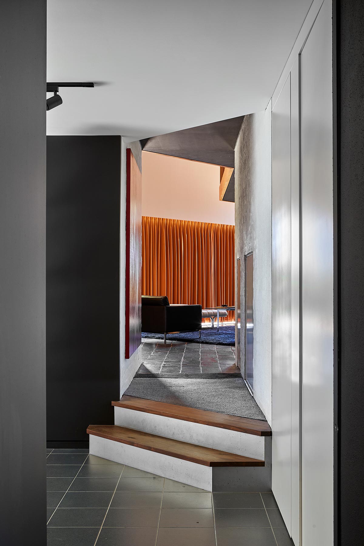 “I think my favourite part of the project is the rich materiality of the interior. The extensive use of timber panels creates a calming and dramatic interior as a backdrop for the lives of the owners.” – MRTN Architects