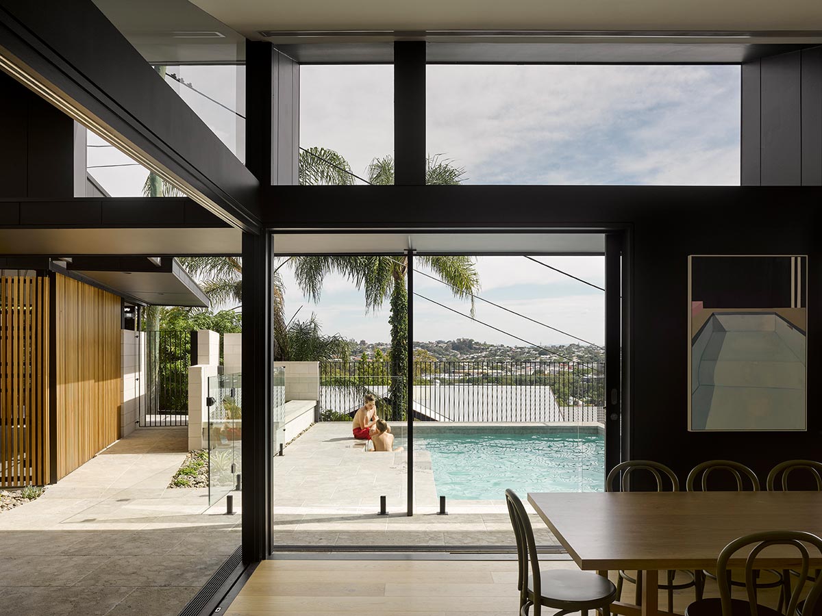 Situated on a very steep slope, Lansdowne Residence is an existing Queenslander that had undergone an extensive renovation to accommodate a growing family. The scheme proposed to move the kitchen and living space to the upper level with the main bedroom and locate all children’s bedrooms, bathroom, laundry and children’s communal space in the Queenslander. With site restrictions and a modest budget, let’s take a closer look and see how this project was approached by Cox Architecture.