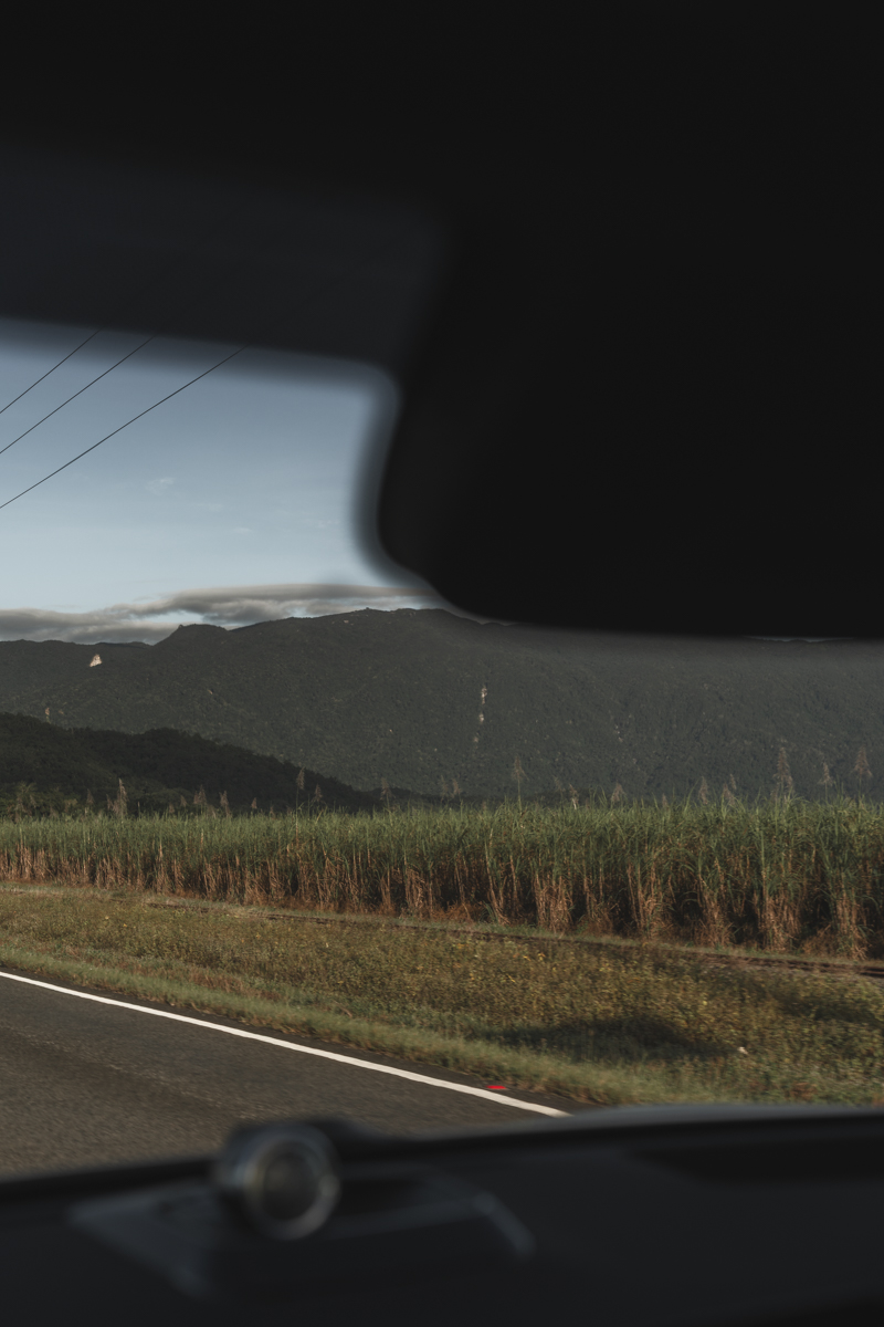 By the time you hit Cairns, you know you’re in Far North Queensland. The air’s thick, you don’t know if the sun’s staying out or if it’s going to rain, and there’s sugarcane as far as you can see. We stopped in the middle of it all for a quick shoot, standing in a sea of green with the humidity doing its thing.