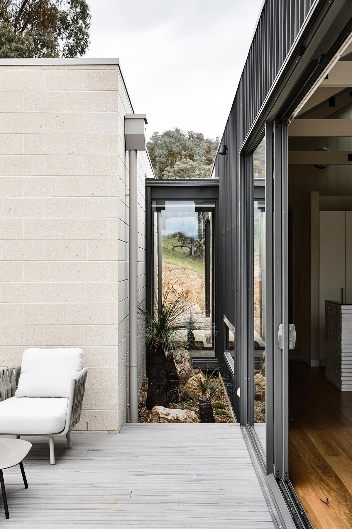 The open deck which links each of the pavilions and enables the home to be opened up to a generous platform that created an extended vista of the surrounding and provides the perfect space to stretch out and enjoy the great outdoors.