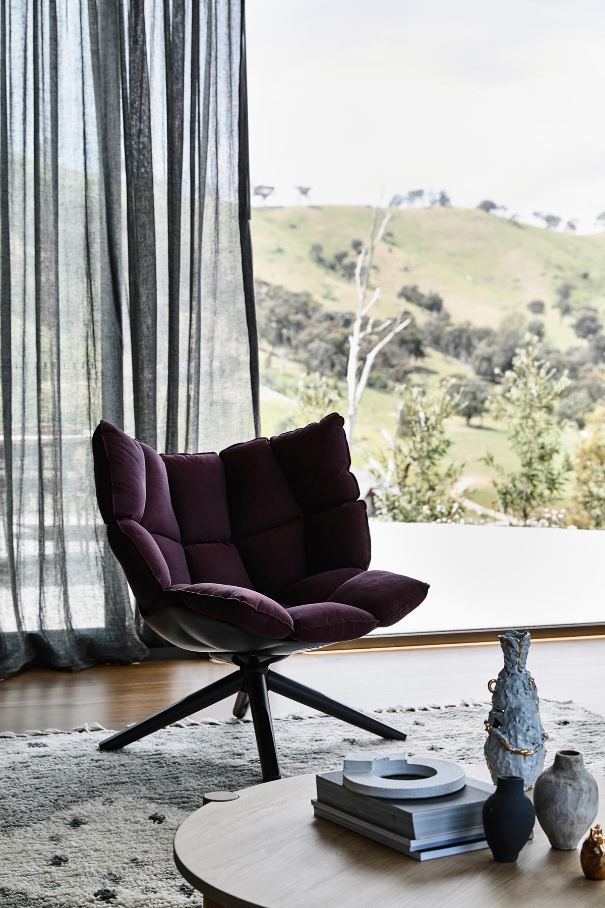 “The home was oriented to maximise both thermal comforts and to frame views. Each room in the house frames an entirely different part of the exquisite landscape which can change from tranquil rolling hills to dry landscape in a season. The pavilion design has enabled the owners to create a garden which seamlessly integrates with the home.” – Detail 9 Architects