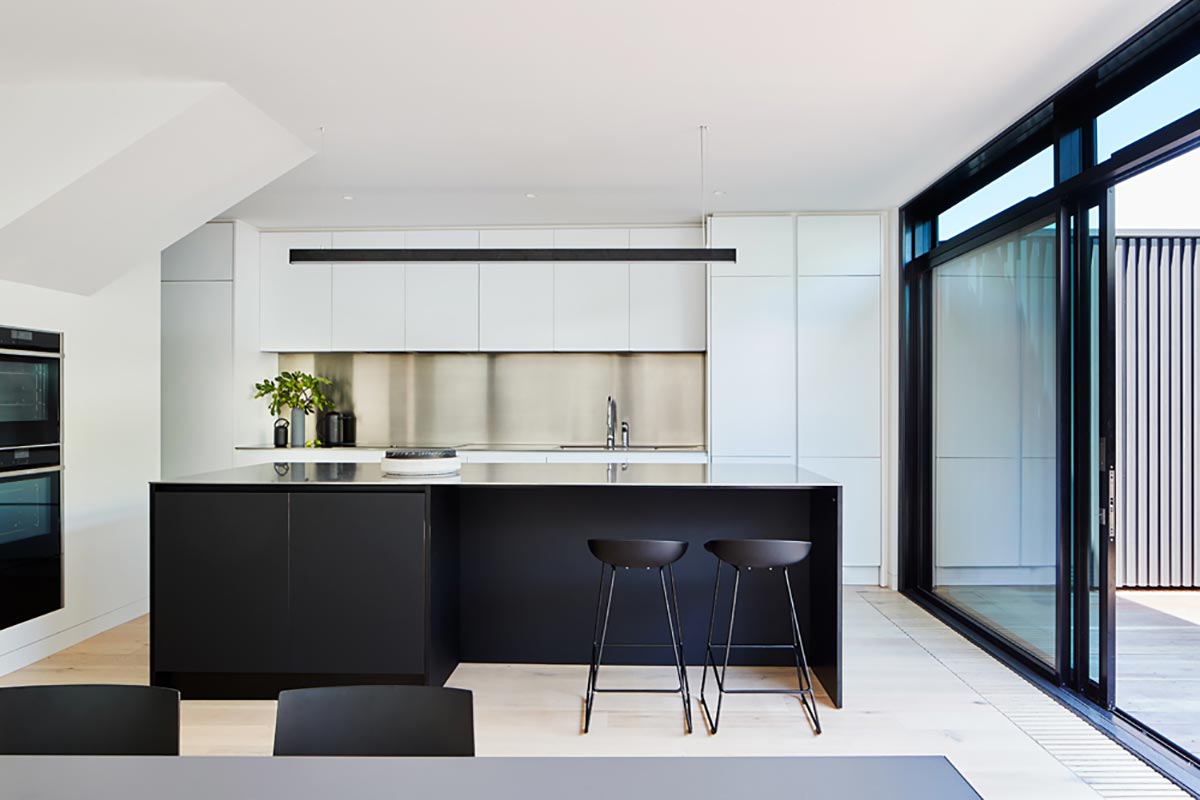 “The re-imagined interior is animated throughout the day by allowing daylight to penetrate deep into the living areas, connecting occupants with the environment. The key social space is centred around the Kitchen, perhaps the most important element of the Brief and family life.“ – NOXON Architecture