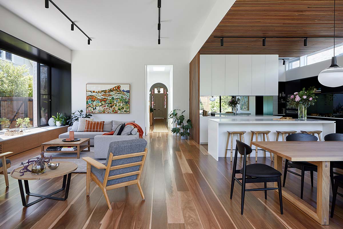 Located in the beautiful, leafy suburb of Camberwell, the Moor House designed by Kuzman Architecture is a restoration of a heritage home which aims to create a new spacious light-filled living wing that married heritage features with contemporary detailing and created visual and physical connections between inside and outside. Shall we go inside?