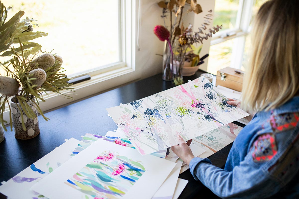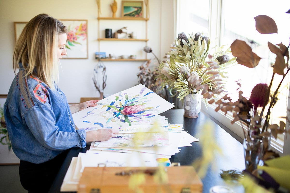 My name is Natalie Martin and I’m an artist based on the Surf Coast in Victoria. My studio is at Ashmore Arts, a creative hub on the coast with lots of other amazing artists and makers. I work predominantly in watercolour these days and I’m super in love with our native flora and birdlife. I teach painting courses and workshops, do a bit of graphic design and art direction, have a line of limited edition prints and eco-friendly stationery, work on exhibitions and commissions and even tried my hand at curating a group show this year! I also released my first online course, ‘Welcome to Watercolour’ which was a tough but rewarding process. I get a real thrill watching people learn how to use watercolour and open up to play and experimentation with paint.
