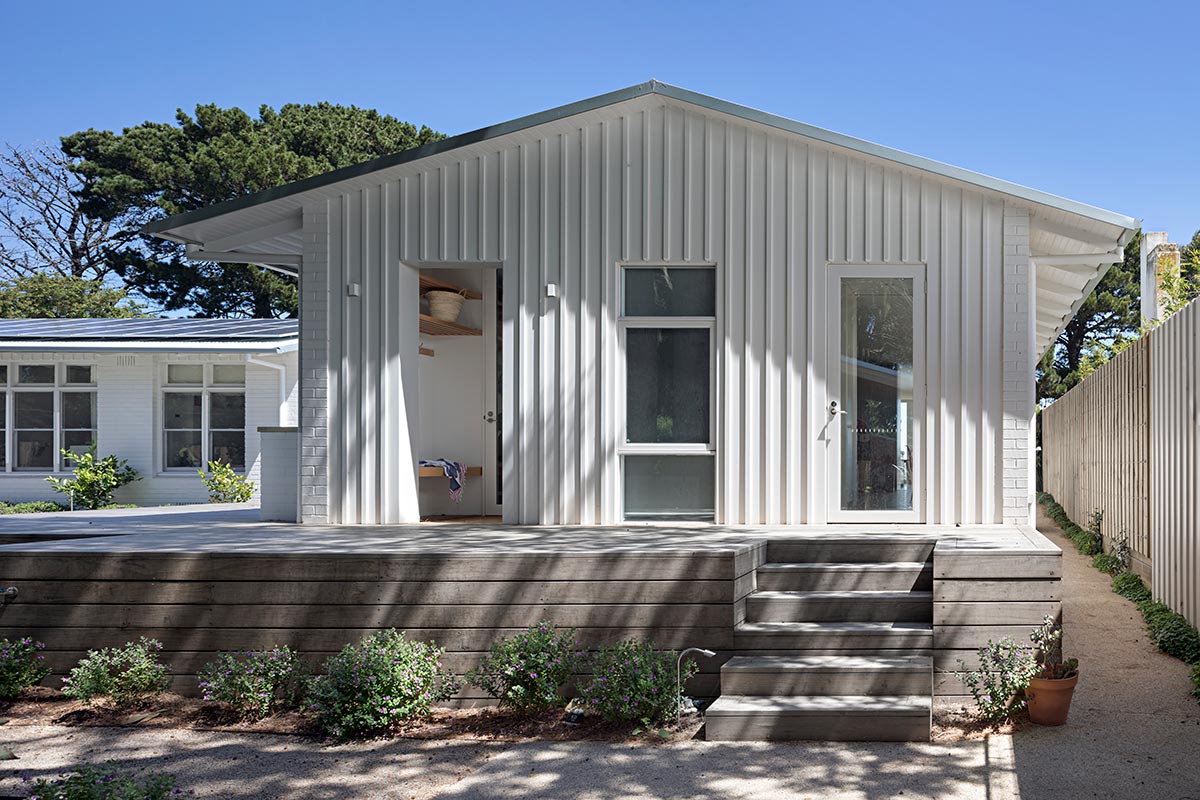“Formally a modest house with some interesting mid-century detailing, such as the windows, fireplace and inbuilt joinery, some of the spaces within the house were less desirable, such as the very small, dark and utilitarian rooms with small windows. We have both retained and drawn inspiration from the best aspects of the old house, and the new house is more generous, contemporary and comfortable.” – Hindley & Co