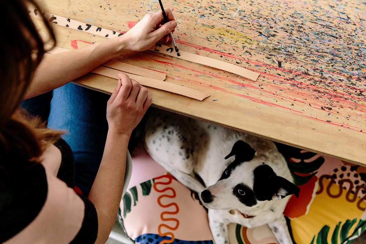 I’m a big podcast listener and it really helps me get into a creative workflow when painting and producing our products. I can listen to anything from creative or business interviews all the way to true crime podcasts. On the weekend, you’ll usually find us walking with Checkers on the many beautiful walking tracks in our area around the Dandenong Ranges. It’s hard not to be inspired by this beautiful place.