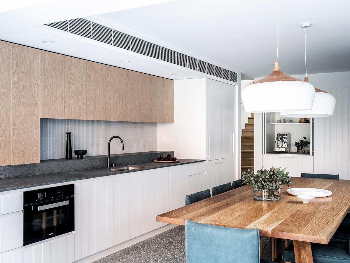 The design also accommodates the service and storage requirements of the home so the clutter could be minimised. The clients spend a lot of time at home with their young family and they ultimately wanted a home that felt calm and relaxed so the interiors are designed in a way that evokes the surrounding natural environment and ultimately fits their lifestlye.