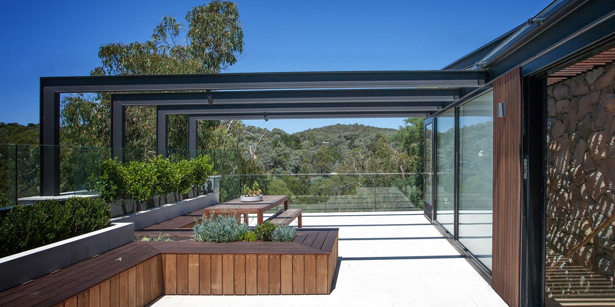 Perched on a high plateau surrounded by greenery and native bush land, this bold contemporary Victorian home is a modern retreat perfect for a family who wished to embrace nature. Designed by Alexandra Buchanan Architecture, North Warrandyte House is built as a family home for a young graphic design couple seeking a peaceful country lifestyle, far from the noise and distraction of the city.
