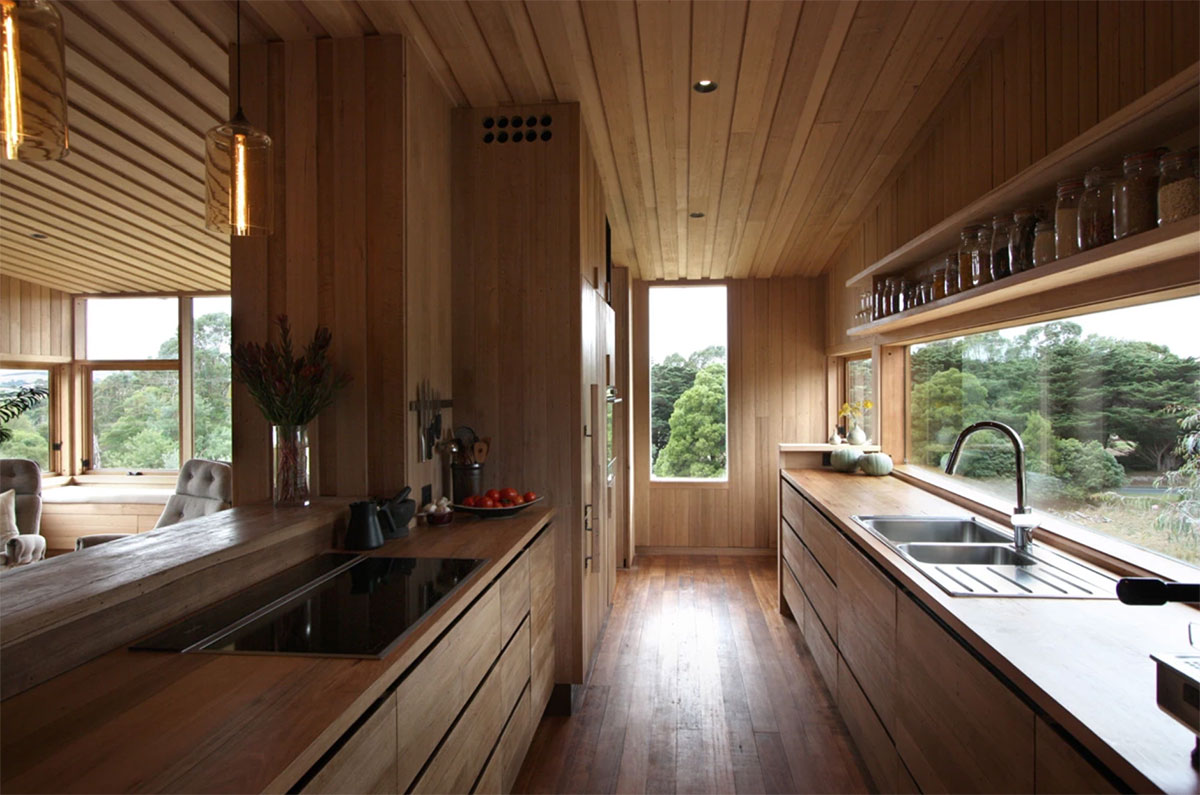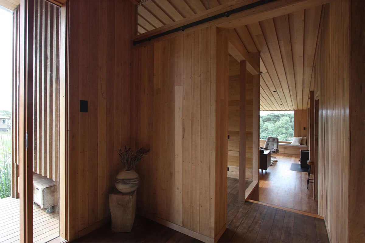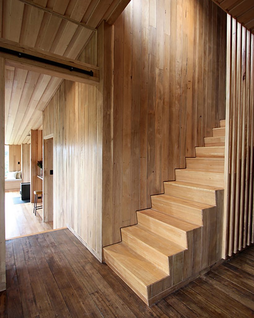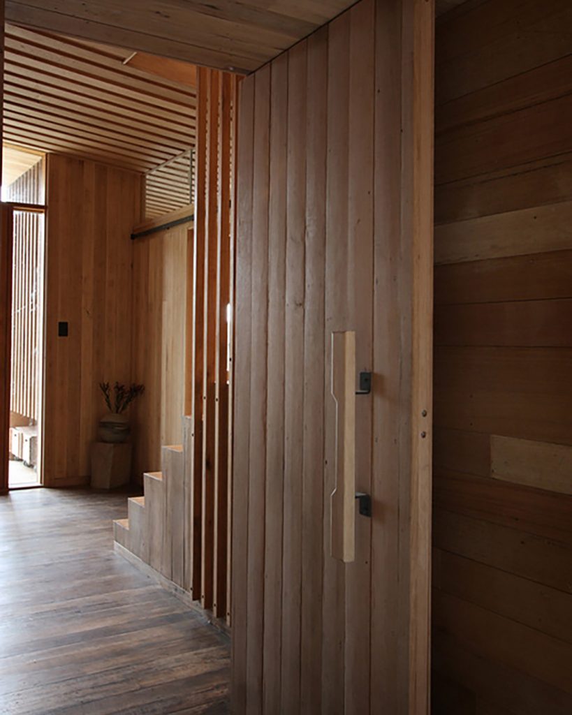 We take a look at another Houses Awards 2018 finalist with the Old Waratah Road House by Michael Chang and Bridget Crowe of 3Fold architecture. Set in Fish Creek, South Gippsland Victoria the home has an exterior and interior that beautifully exposes natural textures and raw materials. The timber cantilevered house connects to its site though split level planning and a gently raked roof-line. The bespoke interior is built almost entirely from hardwood reclaimed from houses due for demolition. Garden spaces flow around and between the house and deck-connected studio shed.