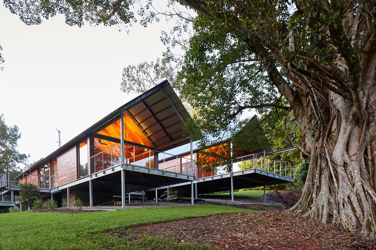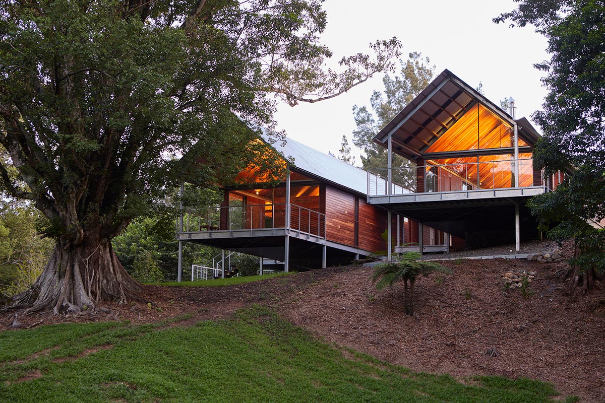 On The Promised Land is a new home nestled on a property within the valley of the Promised Land, north of Bellingen, and surrounded by the Dorrigo and Bindarri National Parks. Designed by Cox Architecture, the house is designed as a home for the client’s farm manager, his wife and their two young boys. Emphasis was given on allowing the home to act as ‘gatehouse,’ providing broad views across the property while ensuring visual privacy between the house and homestead. Let’s take a look…