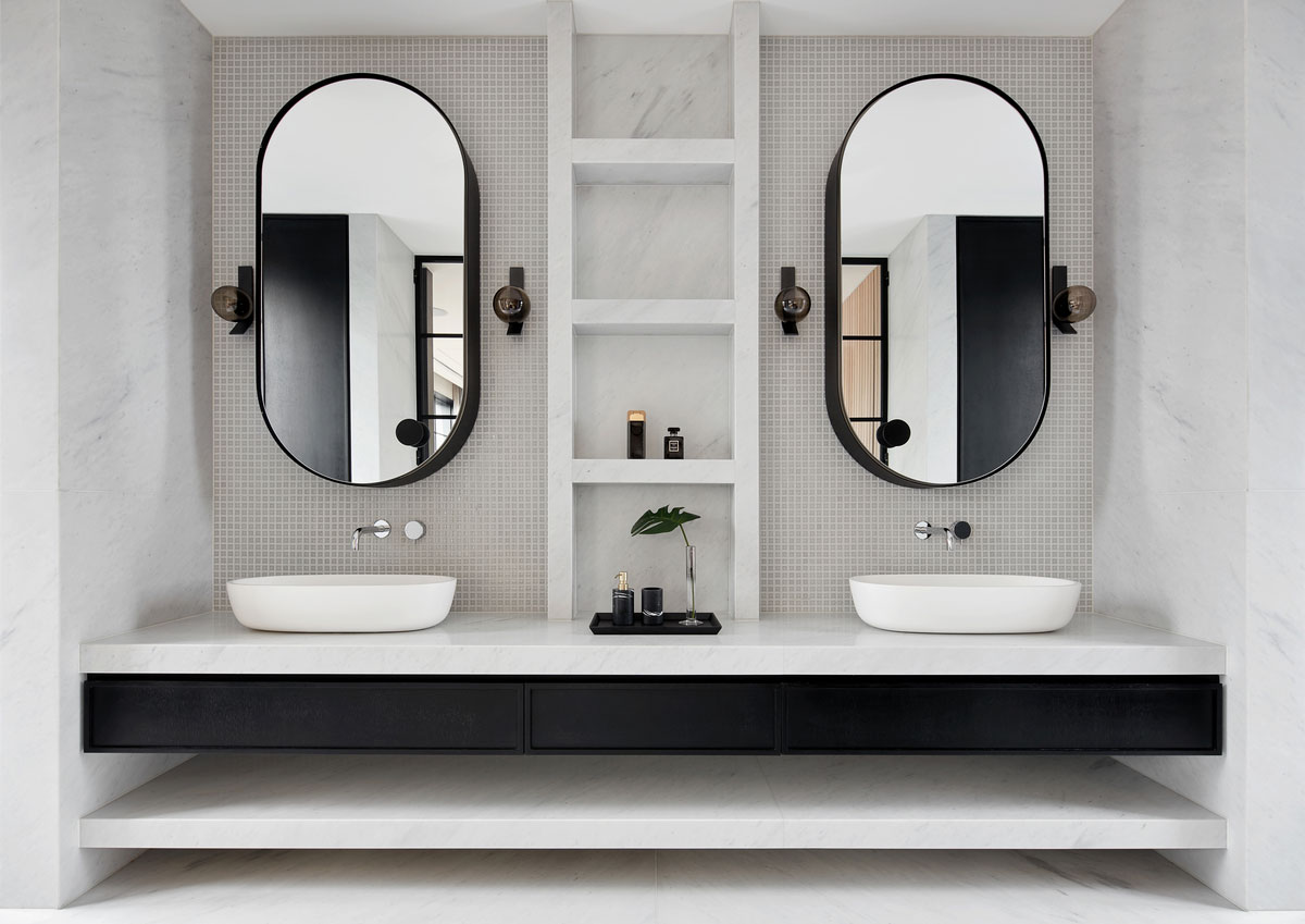 “The client sought our services because they didn’t share the architect’s vision for the interiors. However, we were very much on the same page from the get-go. We were presented with many challenges internally. The original layout of the staircase was compromised by a powder room that intercepted it on the ground floor. We felt this configuration would be disastrous for the design of the staircase, which should be grand and commanding. There were other issues that we had to contend with; multiple ceiling heights in the main kitchen living space; general bathroom layouts; and marrying the new extension with the original architecture.” – Christopher Elliott Design