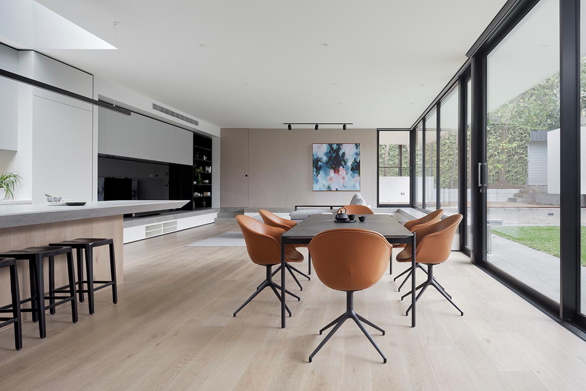 All the main living and dining areas can enjoy northern light through the new extension on the south side of the block. As you approach the extension from the northern side, expansive full-height sliding doors create the illusion of one large space by blurring the boundaries between inside and outside.