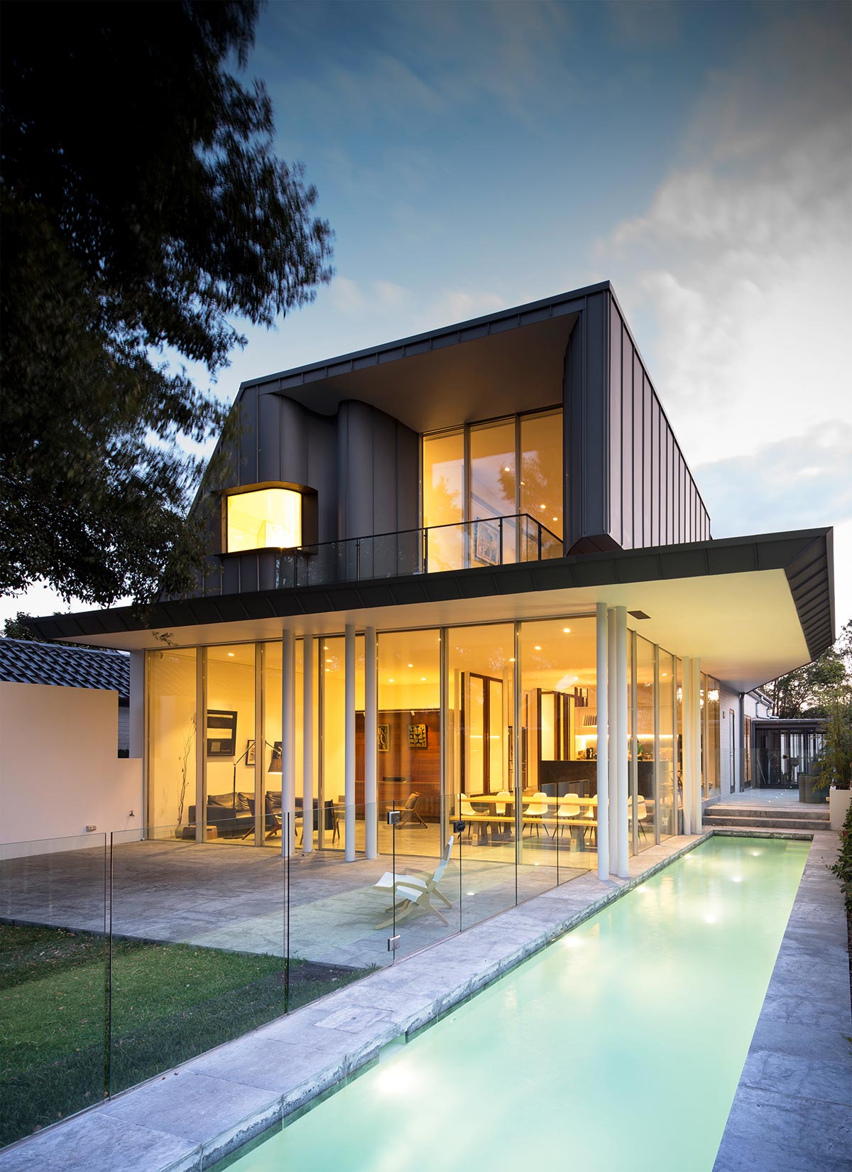 Predominantly using robust, low maintenance materials like timber, zinc cladding, steel, stone, colourback glass and aluminum plate, the built form of the structure and its high-level finishes contribute to a lasting effect, maximizing value and integrity of the house. Simple yet enduring concealed structural concrete floors, services and minimal landscape design, integrate the spaces and its surrounds.
