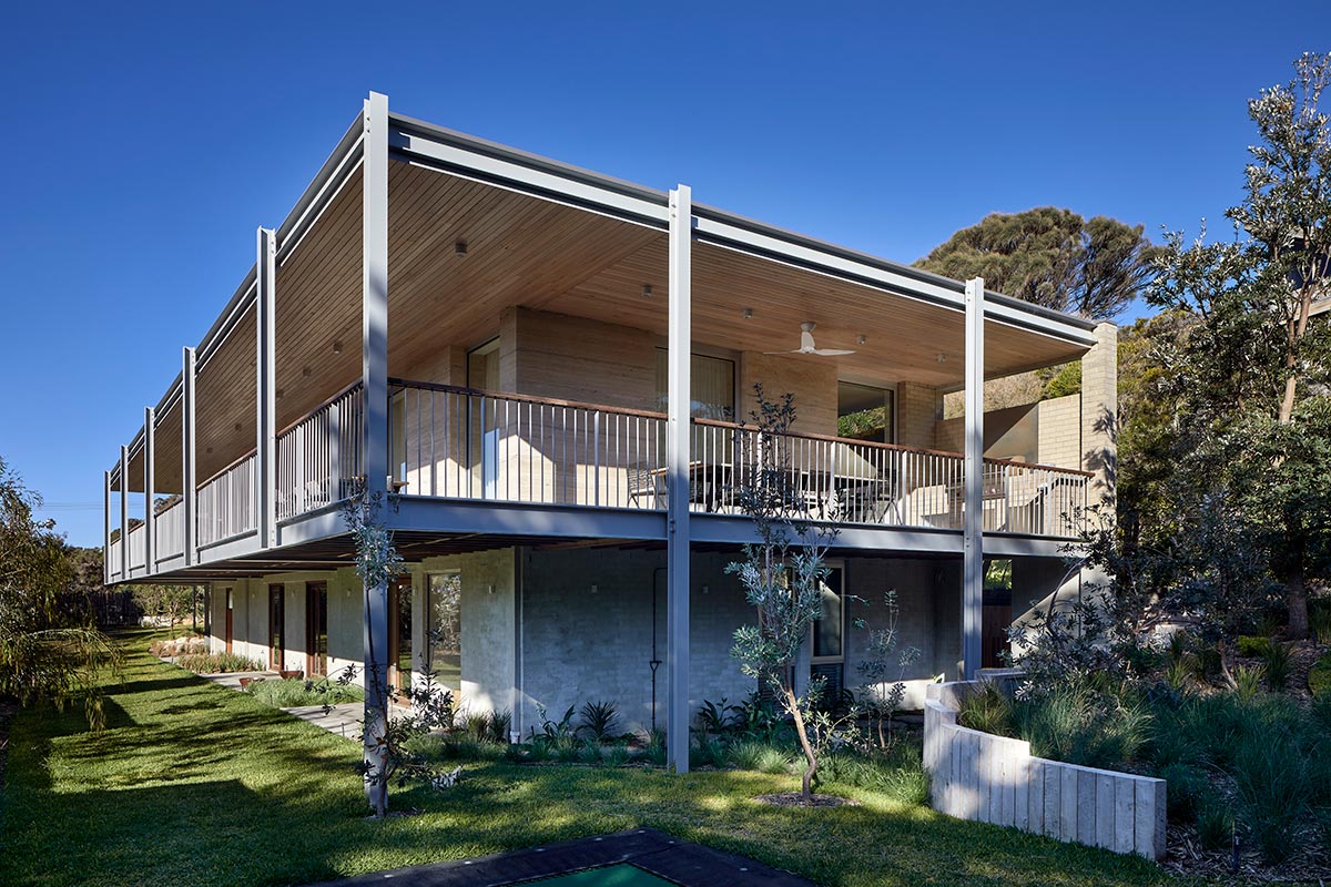“Our Clients came to us with a book of midcentury classics, in which, much to our delight, they had earmarked a photograph of the deep verandah of the Farnsworth House by Mies Van de Rohe, which, along with the qualities of the location and site, gave us our starting point.” – Hindley and Co