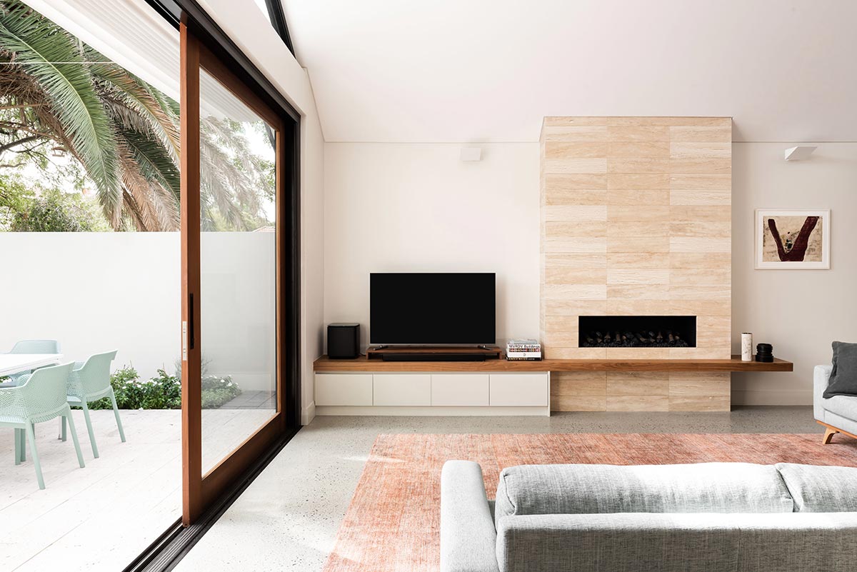“After a tough run negotiating with both the local council and the SAT, the design was approved. City of Subiaco, at the time, had a number of conservative Councillors who were of the thought that new homes should be designed to look like old ones. It was even suggested to use materials that were made to look like other materials, e.g. fake timber – every Architects worst nightmare! For the street elevation, we had to ensure the roof pitch and wall plate heights exactly matched that of the neighbours, and our window widths also had to replicate the form of the neighbouring ones. Within such restrictive parameters, we tried to avoid the home becoming a modern replica of an older home built for a different time. Through the use of timber, steel and CFC cladding, we sought to keep the home contemporary, but more importantly, low maintenance for the owners.” – Robeson Architects
