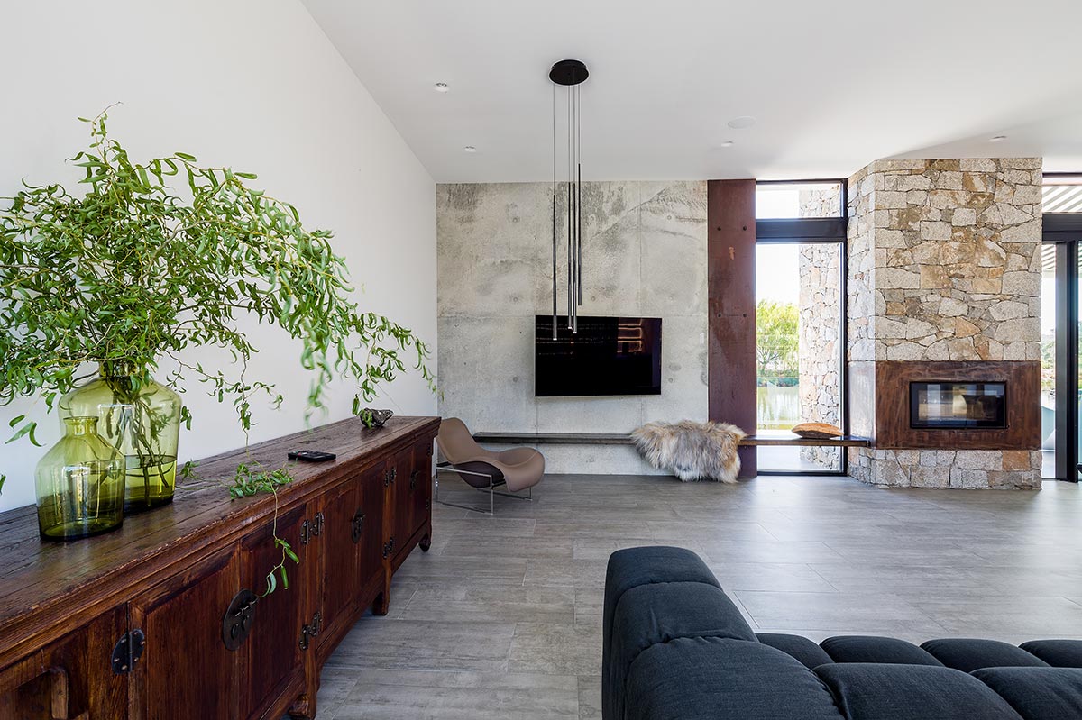 Having a form-working company, the clients opted to reuse waste materials from their projects and utilise it on the house. This included unlimited concrete, local stone boulders, and old plate steel form liners. This takes repurposing to a new level, further accentuating the already developed sustainability plan for the build.