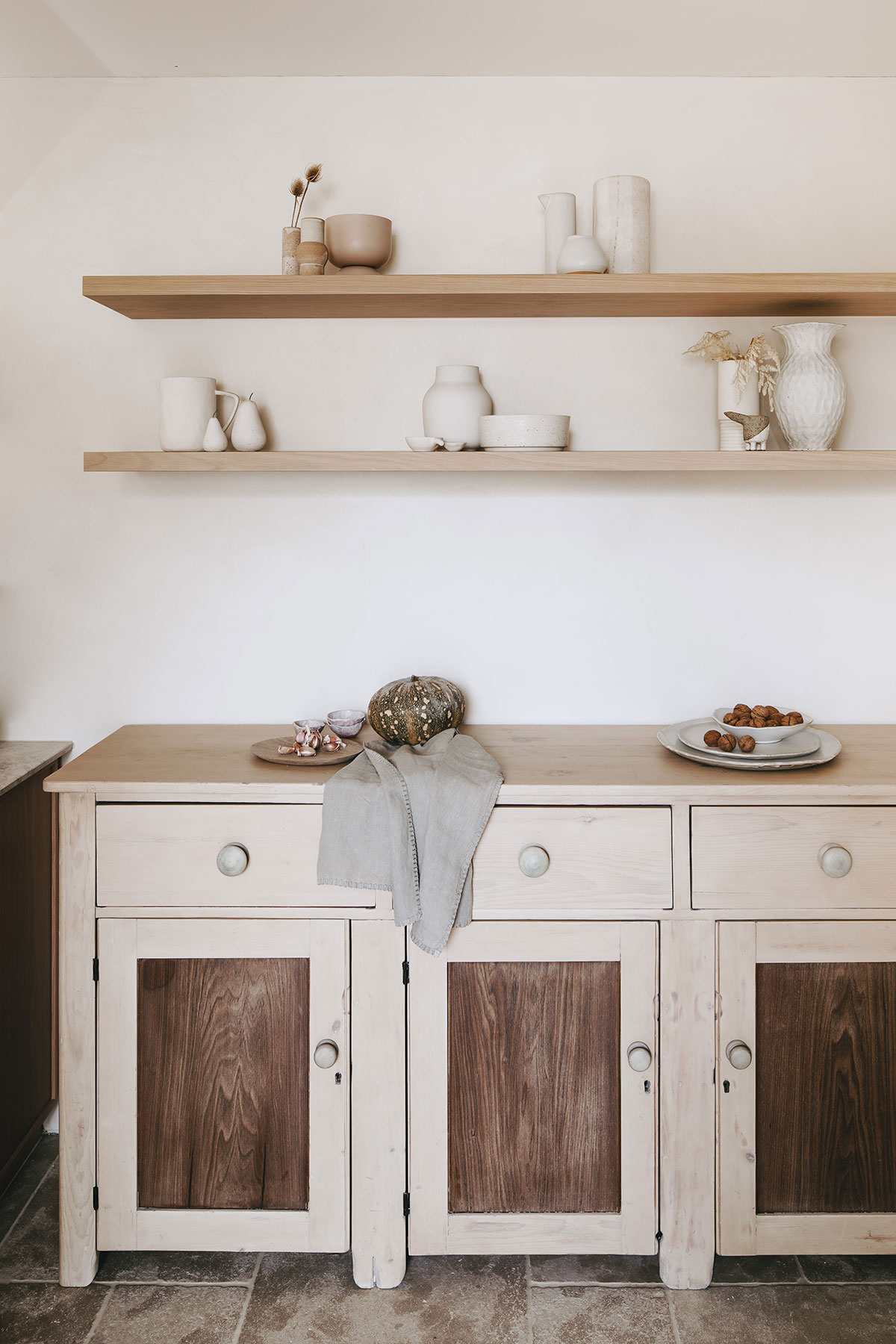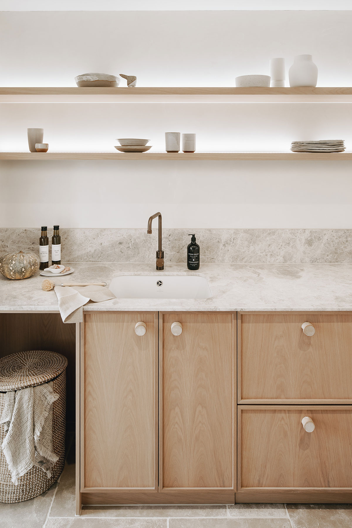 Soft furnishing, decorations and material finishes all fall within the same soft, neutral colour palette of stone, wood, limestone, softly polished plaster, grasses, and beige linens. The result is a home we can just know would be happy-sigh inducing.