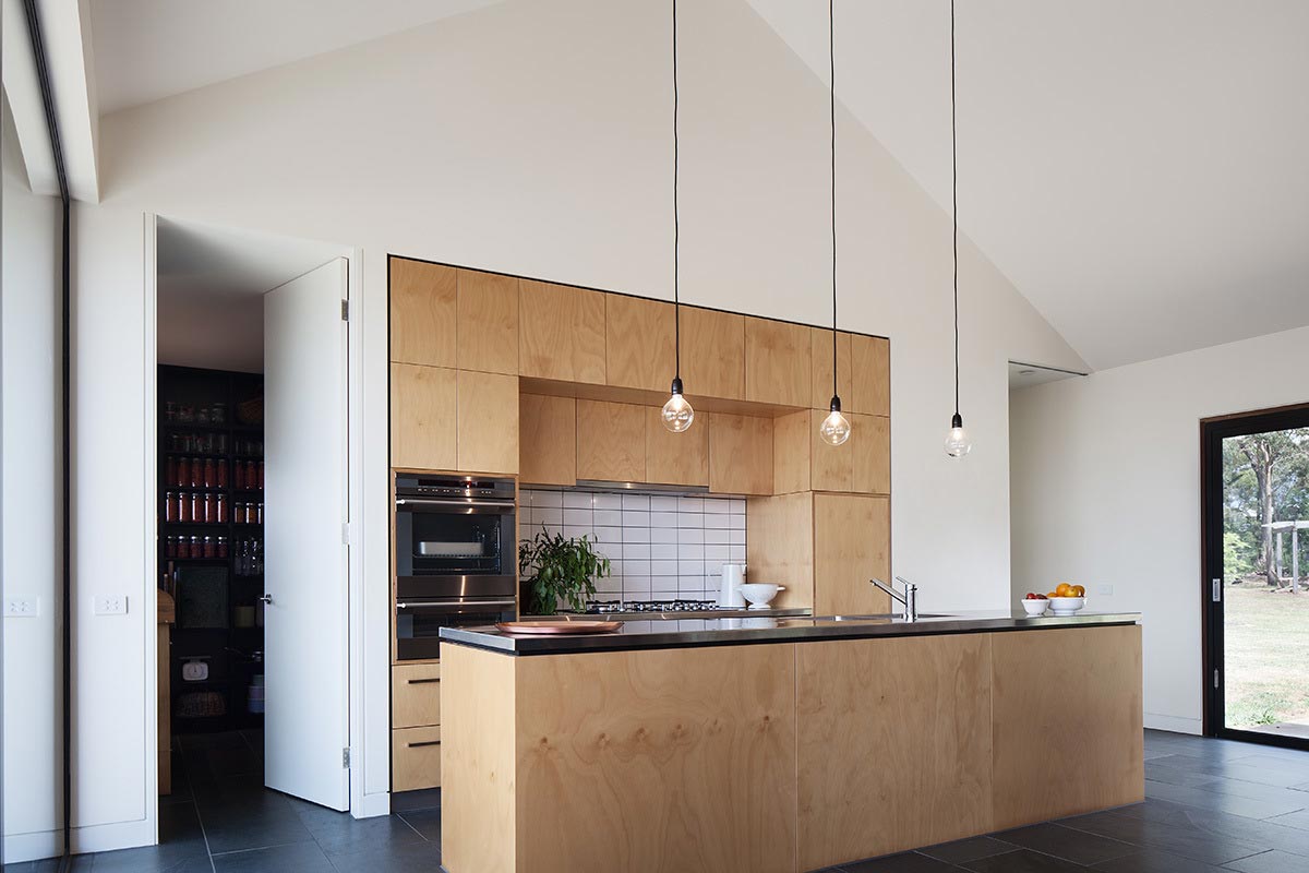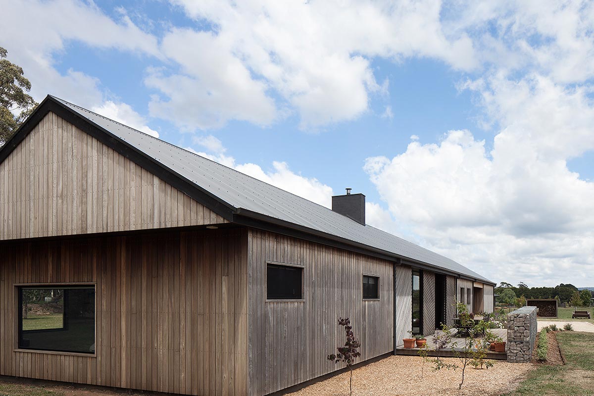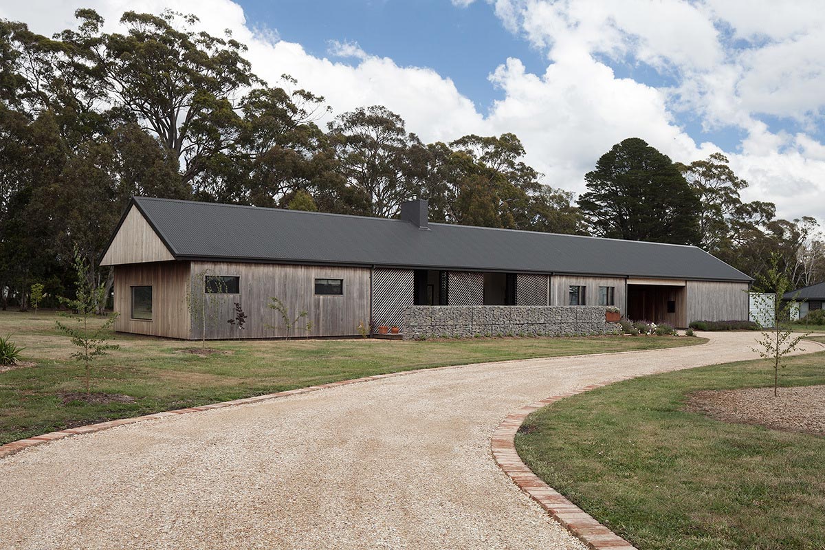 In the Great Dividing Range nestled in a quiet, country escape, the Trentham Long House was built for new grandparents with their extended family in mind. Combining farmhouses into a singular building under a spacious gable roof, MRTN Architects together with the client and their son who is a builder himself, made it possible for the vision of this renovation to materialise. The old machinery shed, drive through loading zone and the main farmhouse was put together to create a simple, lengthy house that is seamlessly divided to satisfy the daily needs of living a low technology life in the countryside.