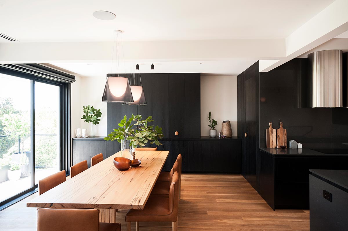 The Upside-Down House is the result of a complete internal overhaul and external update to an existing dark and segmented 1970s double brick home located in Kew, Victoria. Designed by Inbetween Architecture, the brief was to transform the existing home to accommodate larger living spaces, bedrooms, and updated amenities without extending the building outwards. The clients, a young family of four, also wanted more natural light in the house and a pavilion in the backyard. Come on in and let’s take a closer look…