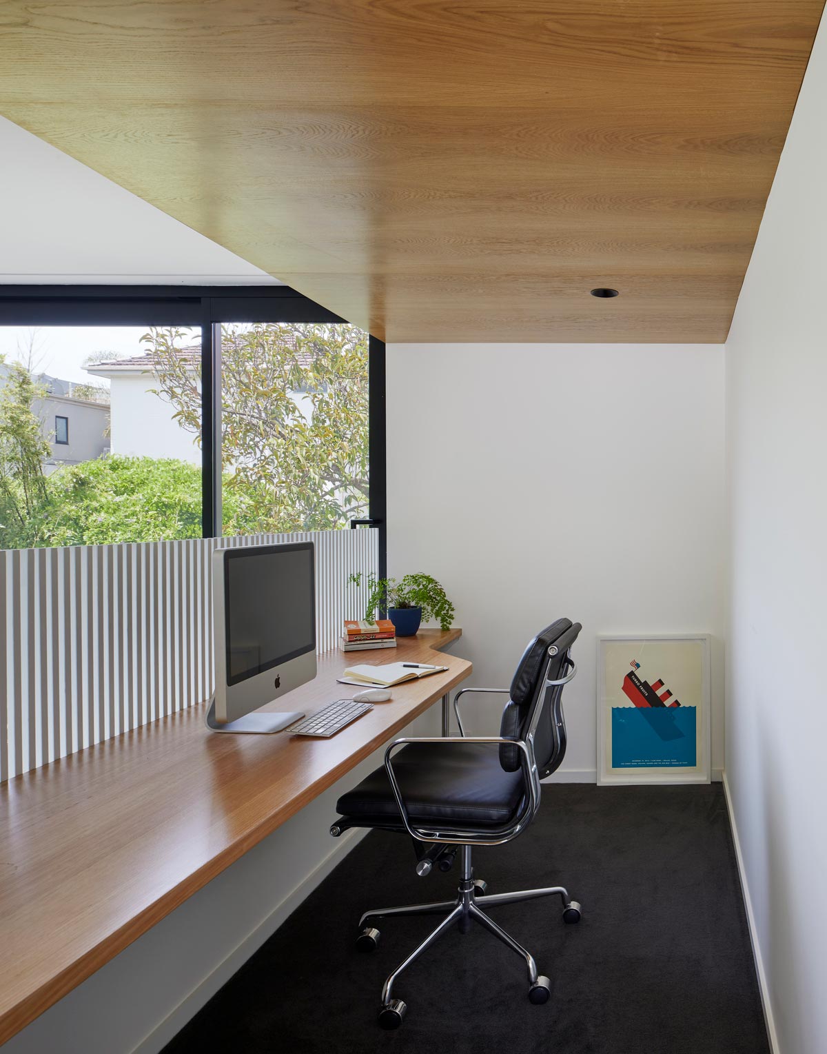 New windows and other metal elements were inserted into the building fabric of the existing rear addition to enliven the spaces. As with the building, as much of the existing was retained as possible when considering the new landscaping throughout the property. – Andrew Child Architecture