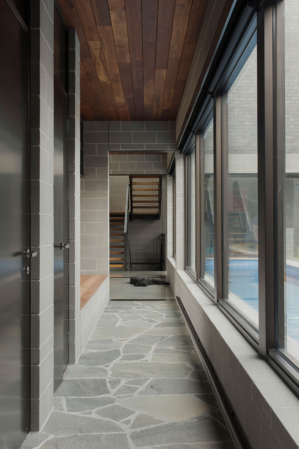 The clients also have a growing collection of Australian paintings and wanted an area which they can continue to grow and display their collection, the block wall also ensured that every part of it could be used to support art. The brief also requested for a lap pool which was positioned right in the center of the home. All these interior features along with meticulous selection of materials were integrated and flowed flawlessly throughout the space.
