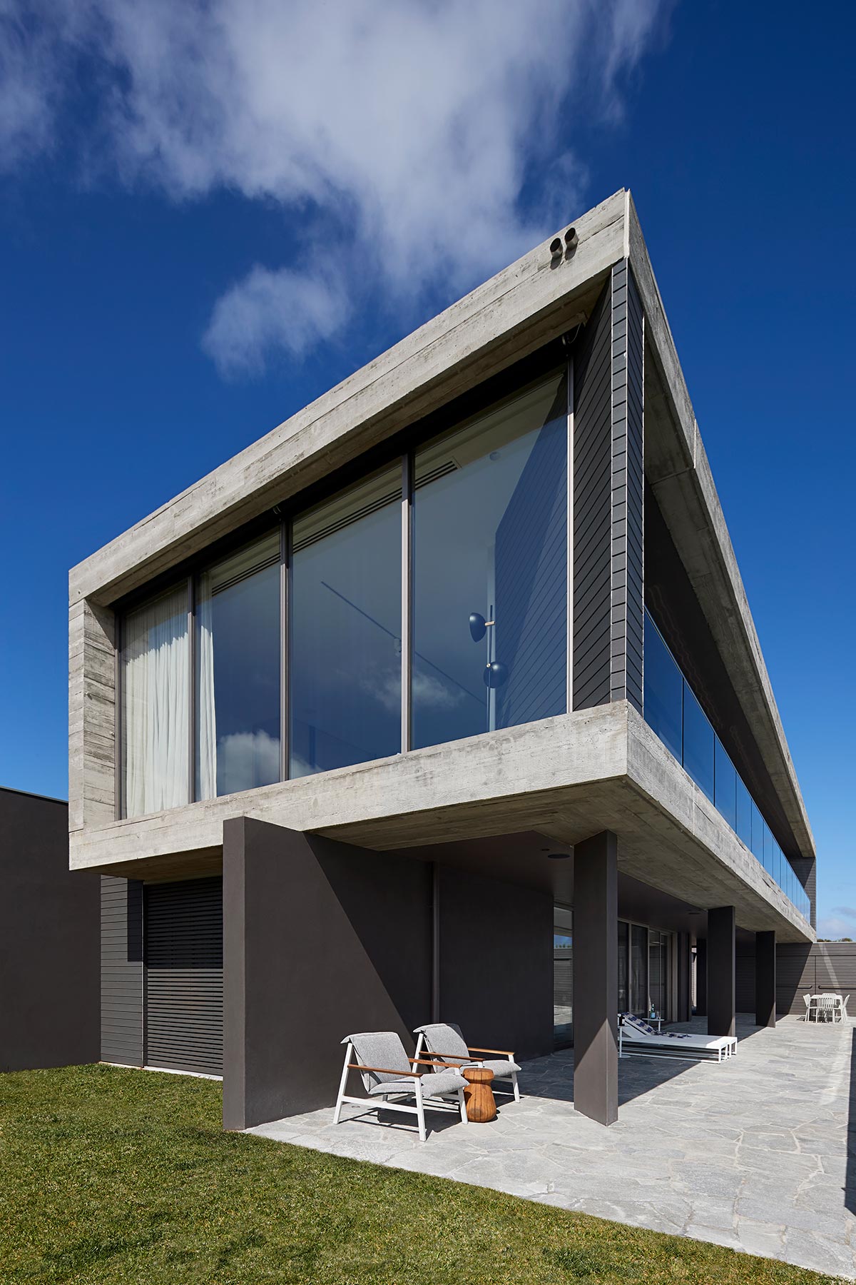 “The spatial arrangement, orientation, views and the onerous site-specific height and setback requirements were all strong drivers during the design process, producing long extruded north facing living spaces that are defined by furniture and joinery, not walls. The ground floor bunkers in with bedrooms thumped deep into the dunes, the floating first floor living zone takes in the spectacular views and acts as the command station overseeing all activities.” – Rachcoff Vella Architecture