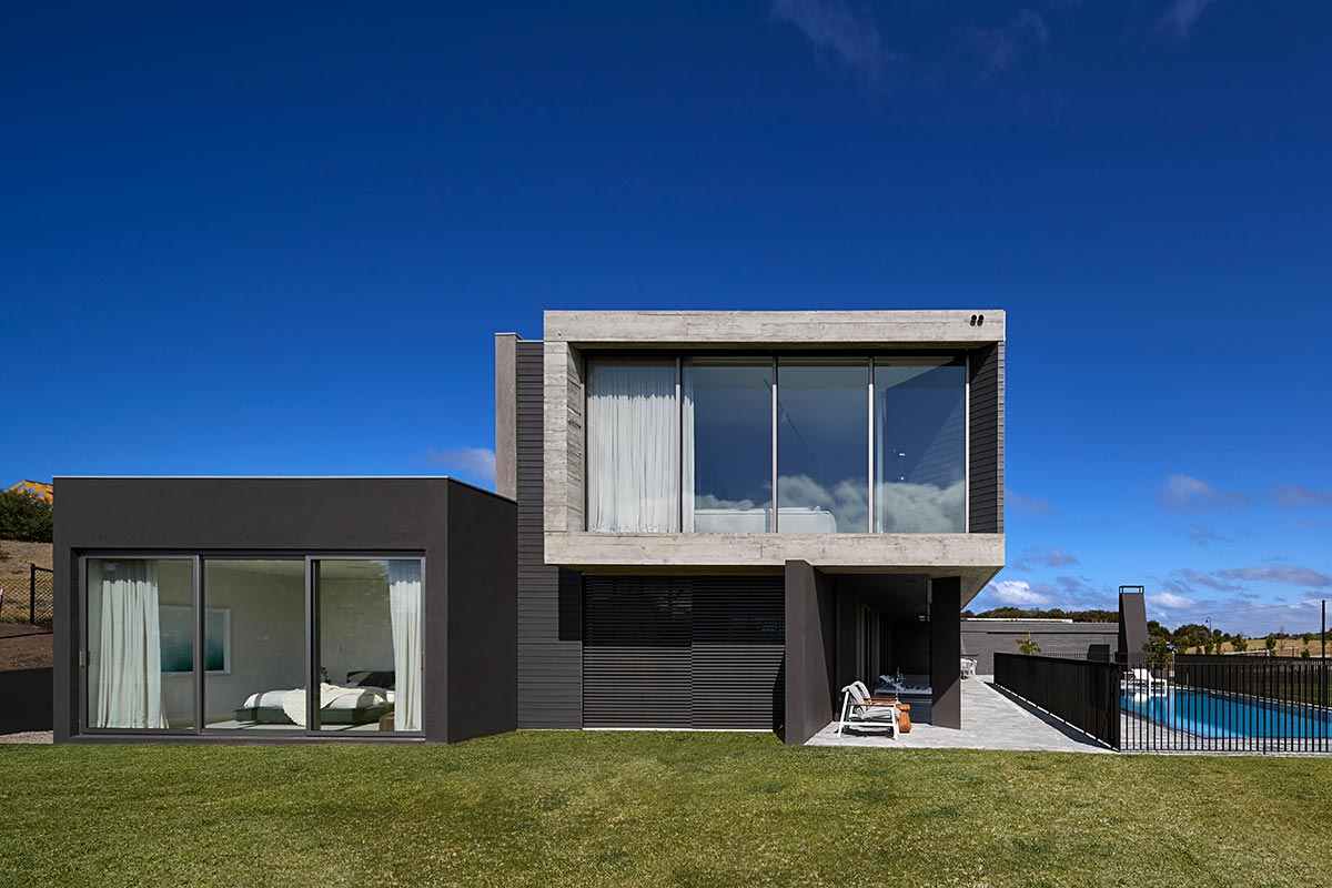 This new home has been designed in a way that the concept revolves around the connection with the environment. This aesthetic appeal is complemented by the durability of the materials, which are designed to withstand the adverse conditions the Australian weather has to offer. Within a deep recessive void, an oversized timber door opens to present a soft, welcoming underbelly of winter beach tones and a sense of calm.