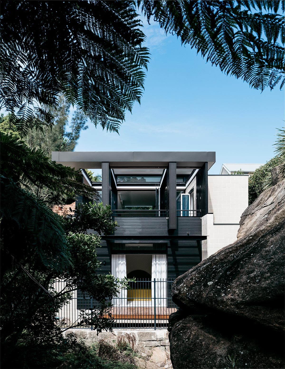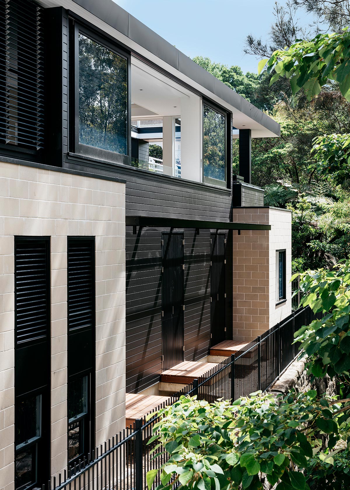 Located within the Heritage Conservation Area of Woollahra Council, the Woollahra House designed by Porebski Architects is perched on a 5 m sandstone heritage wall that forms part of a broad bushland environment. With its solid concrete block corner buttresses rising up from the existing sandstone foundation, the house has been built as a structure that belongs and unifies with the park.